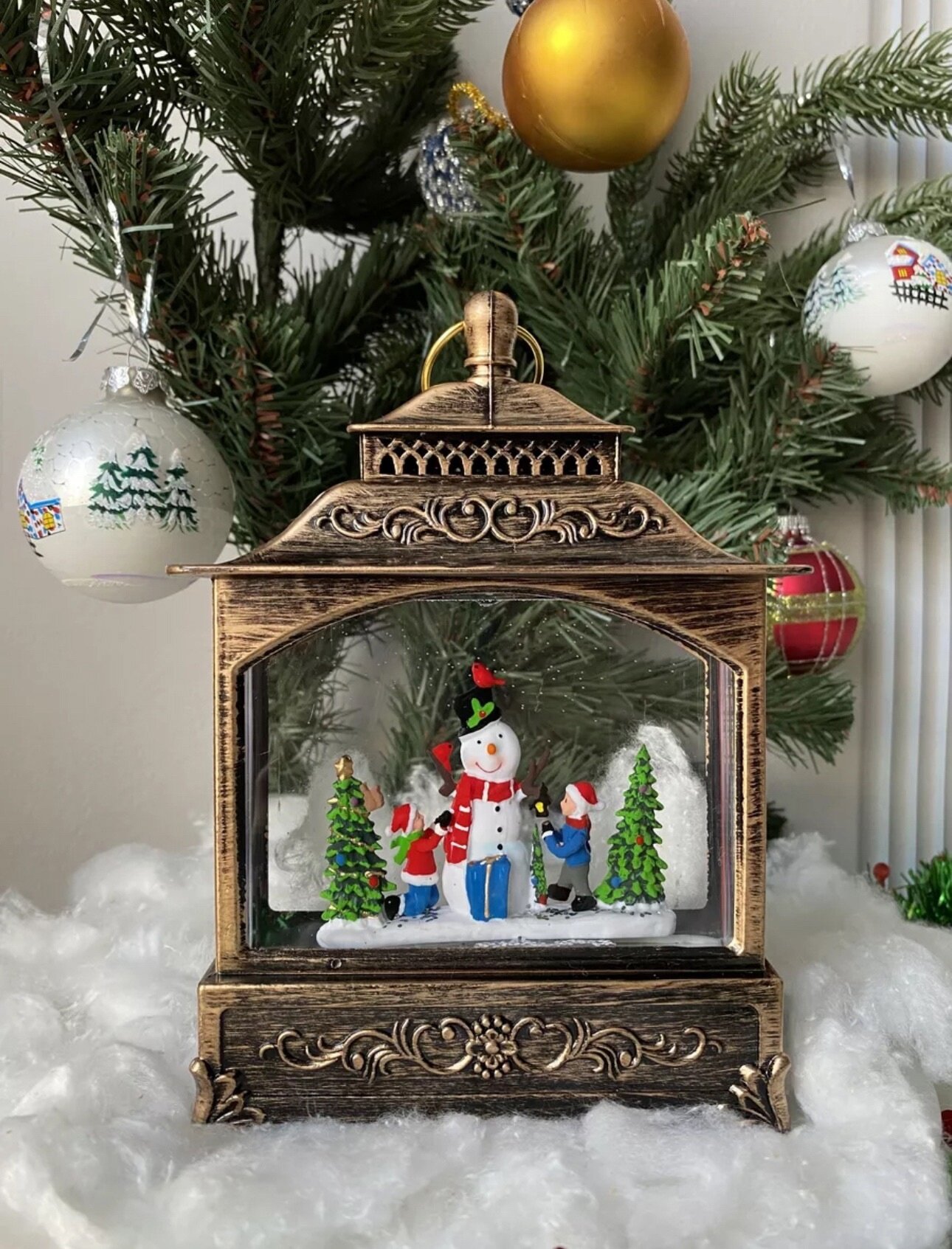 Новогодний фонарь-светильник Kosmo.store "Снеговик", музыкальный, со снегом интересное: