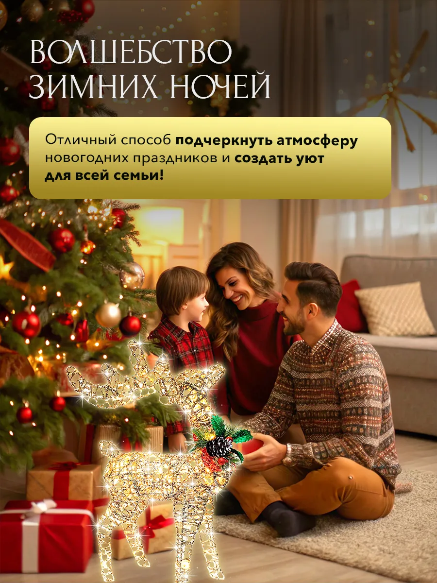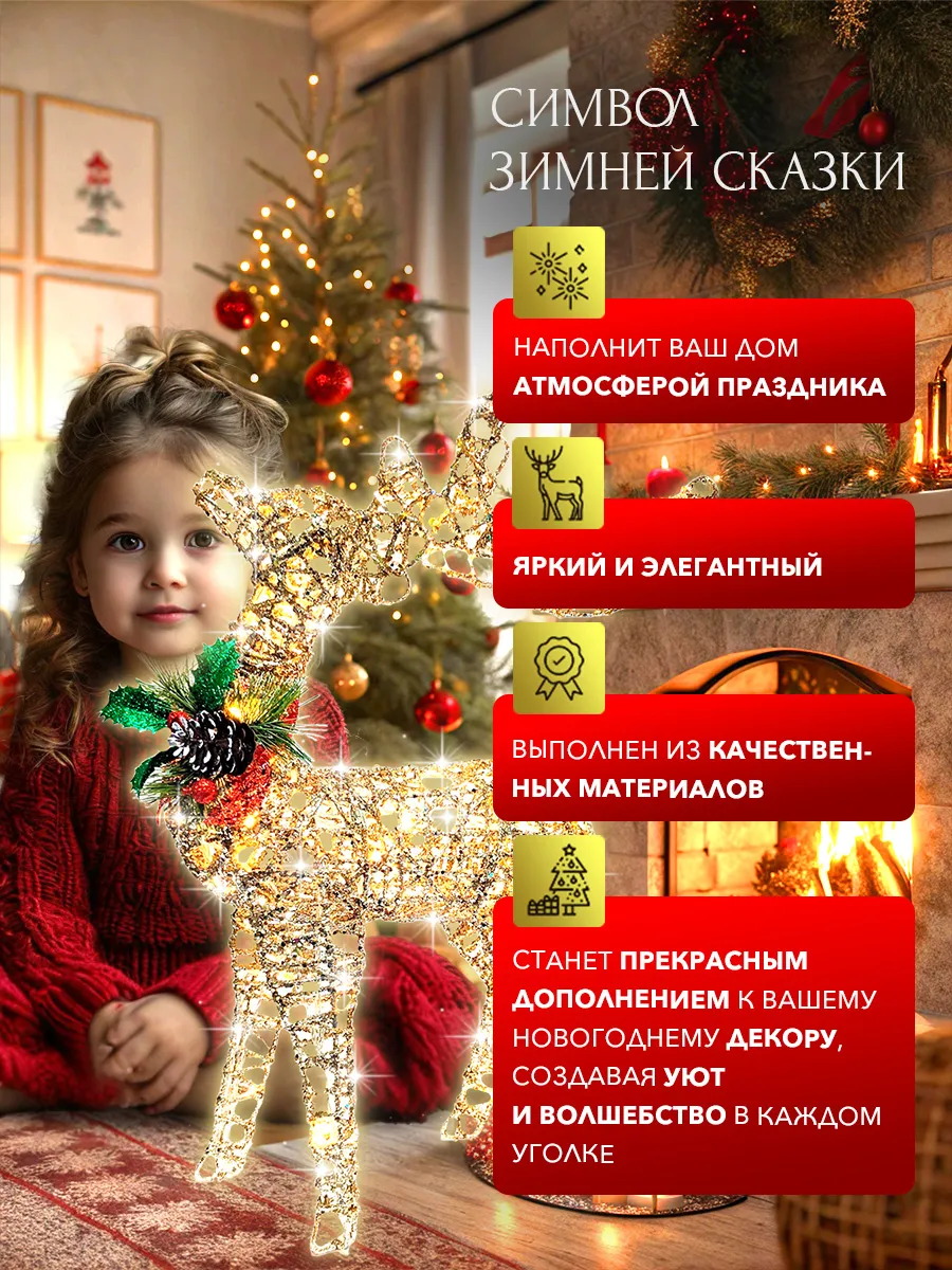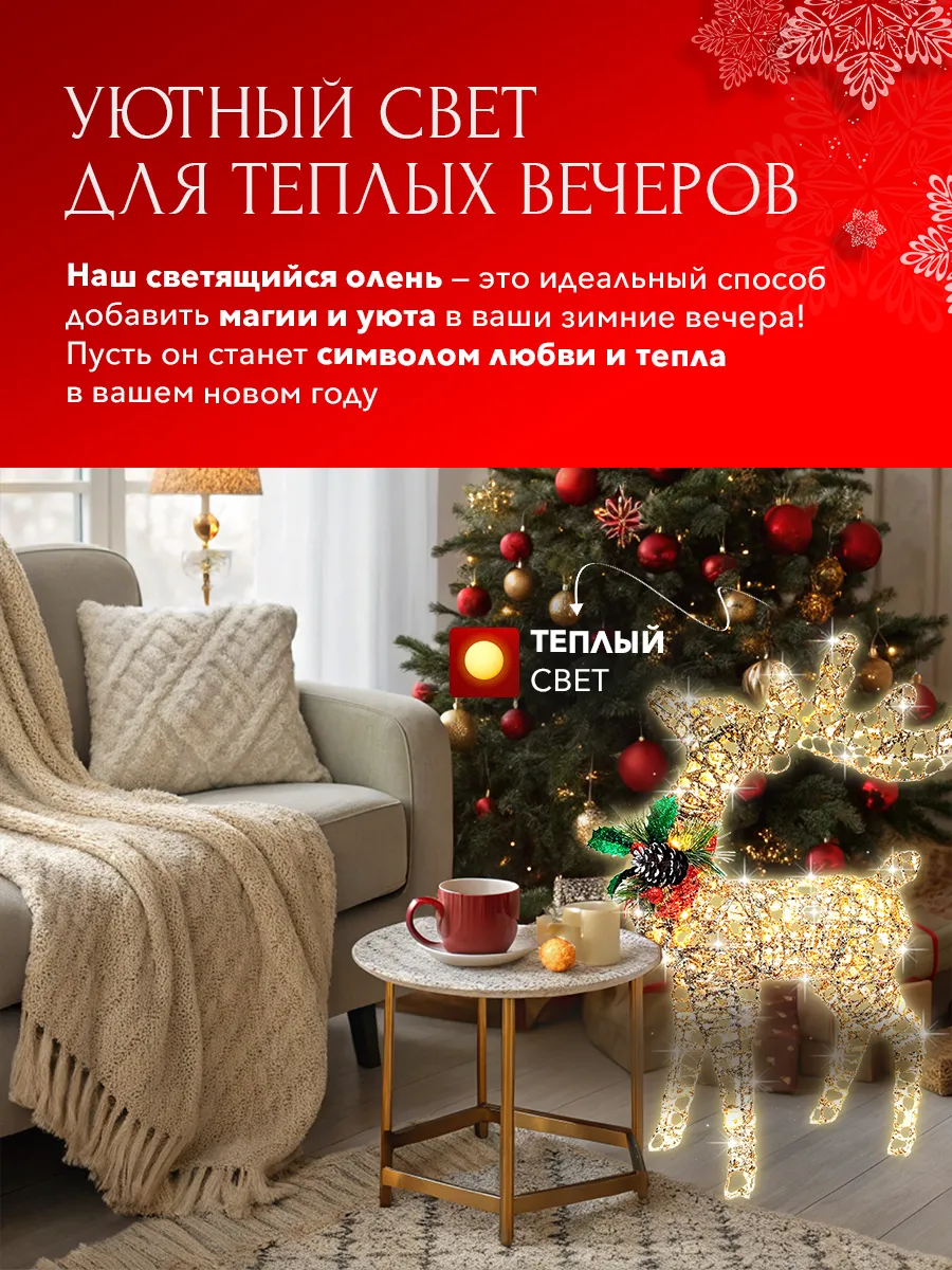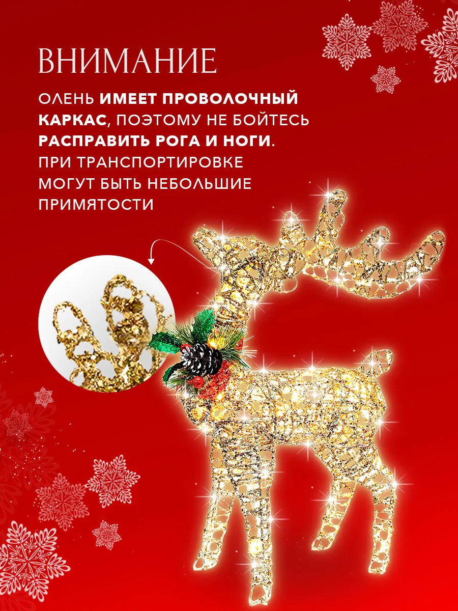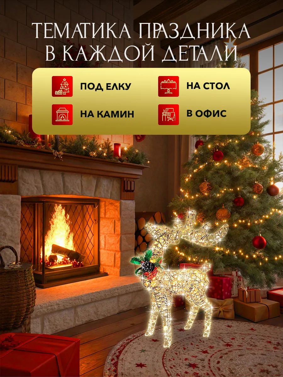 TIKO Новогодний олень для декора дома, светодиодные фигуры, светящийся олень 50 см на подарок интересное: