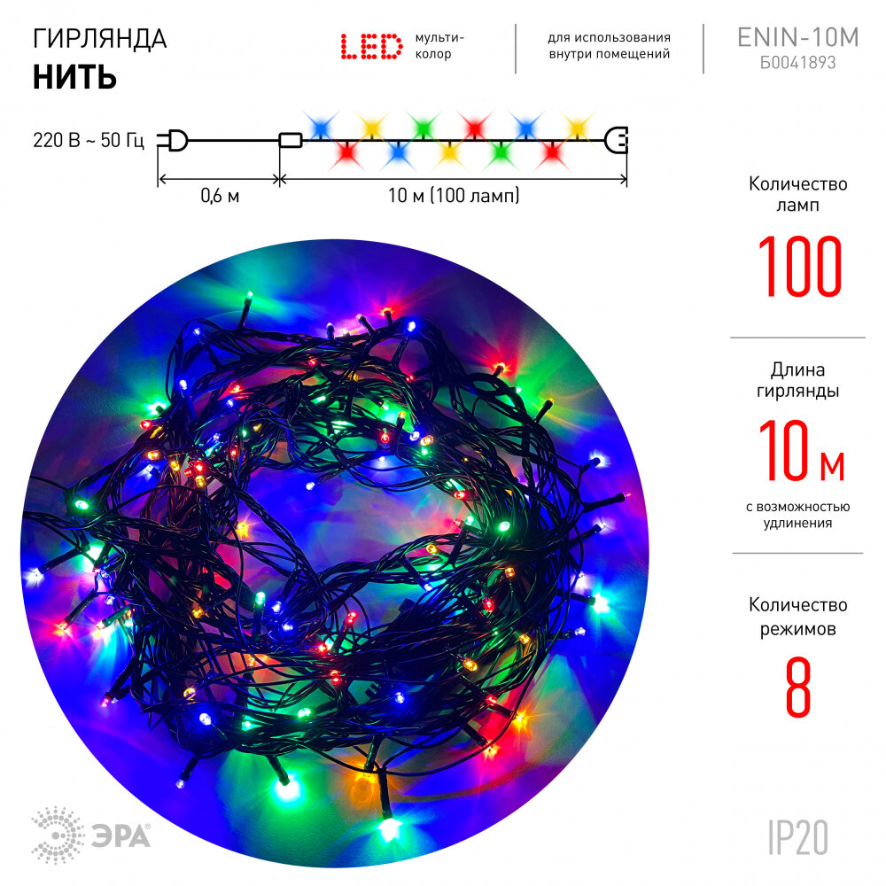 Гирлянда светодиодная нить ENIN-10M ЭРА от сети 10 м, мультиколор, 100 LED интересное: