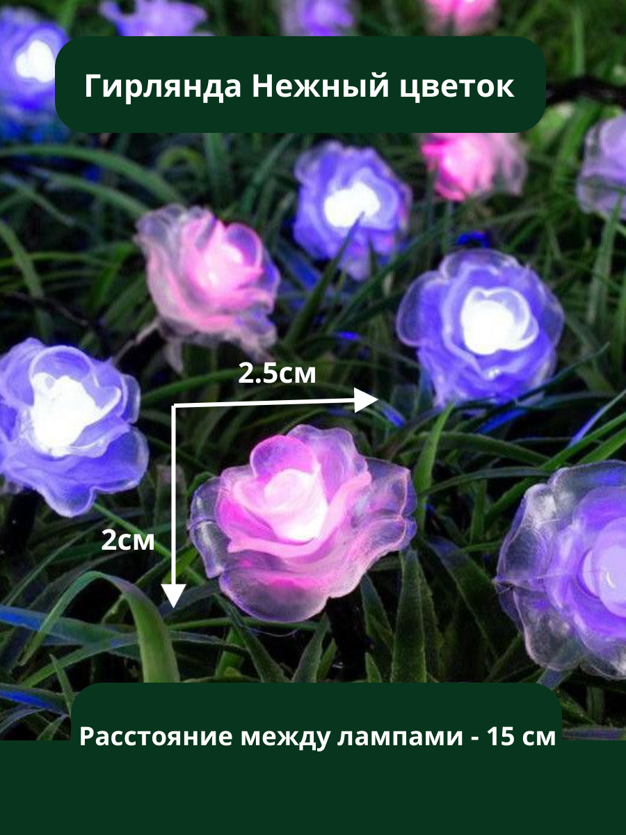 Гирлянда уличная на солнечной батарее "Нежный цветок", 3 метра, 20 ламп, 2 режима, розовый/фиолетовый интересное: