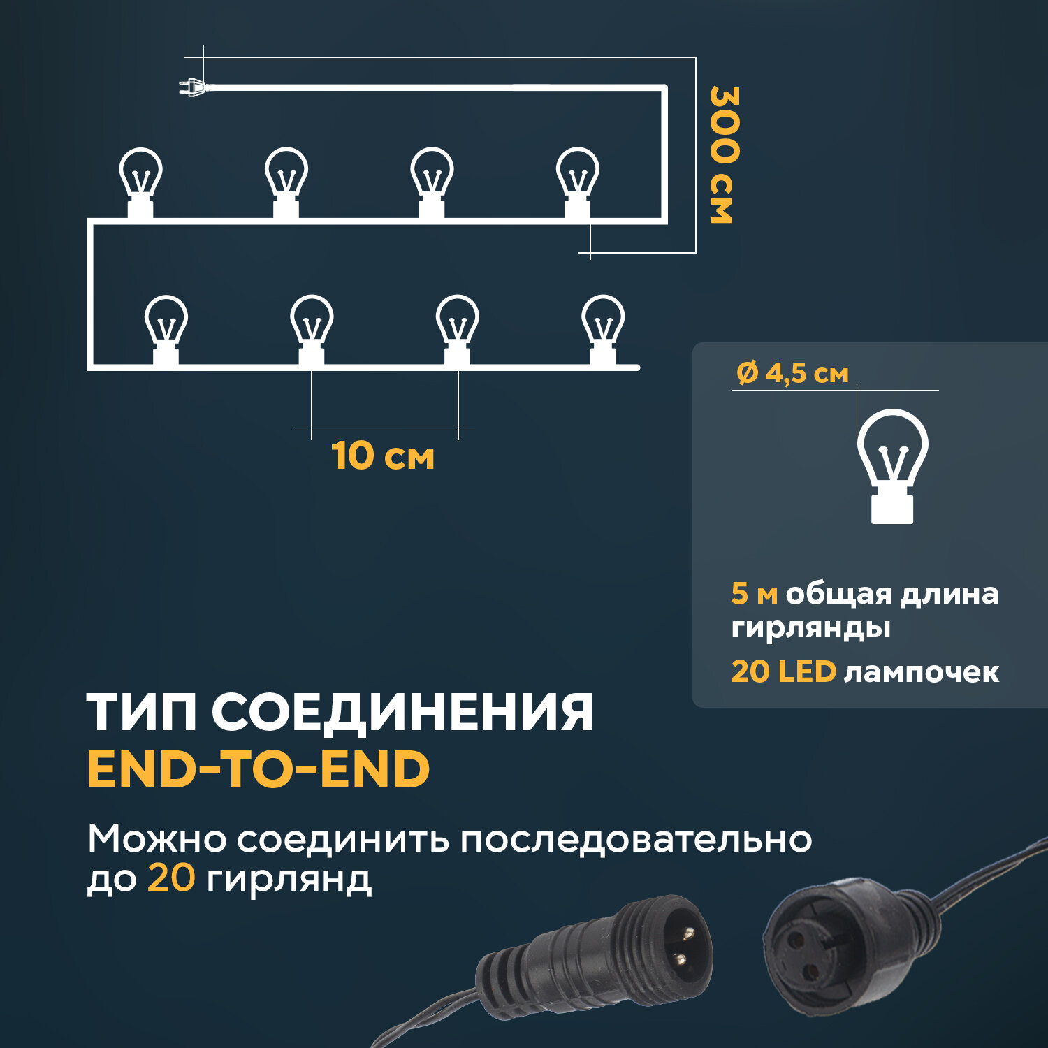 Светодиодная лофт-гирлянда Neon-Night 5 м, теплое белое свечение 20 LED интересное: