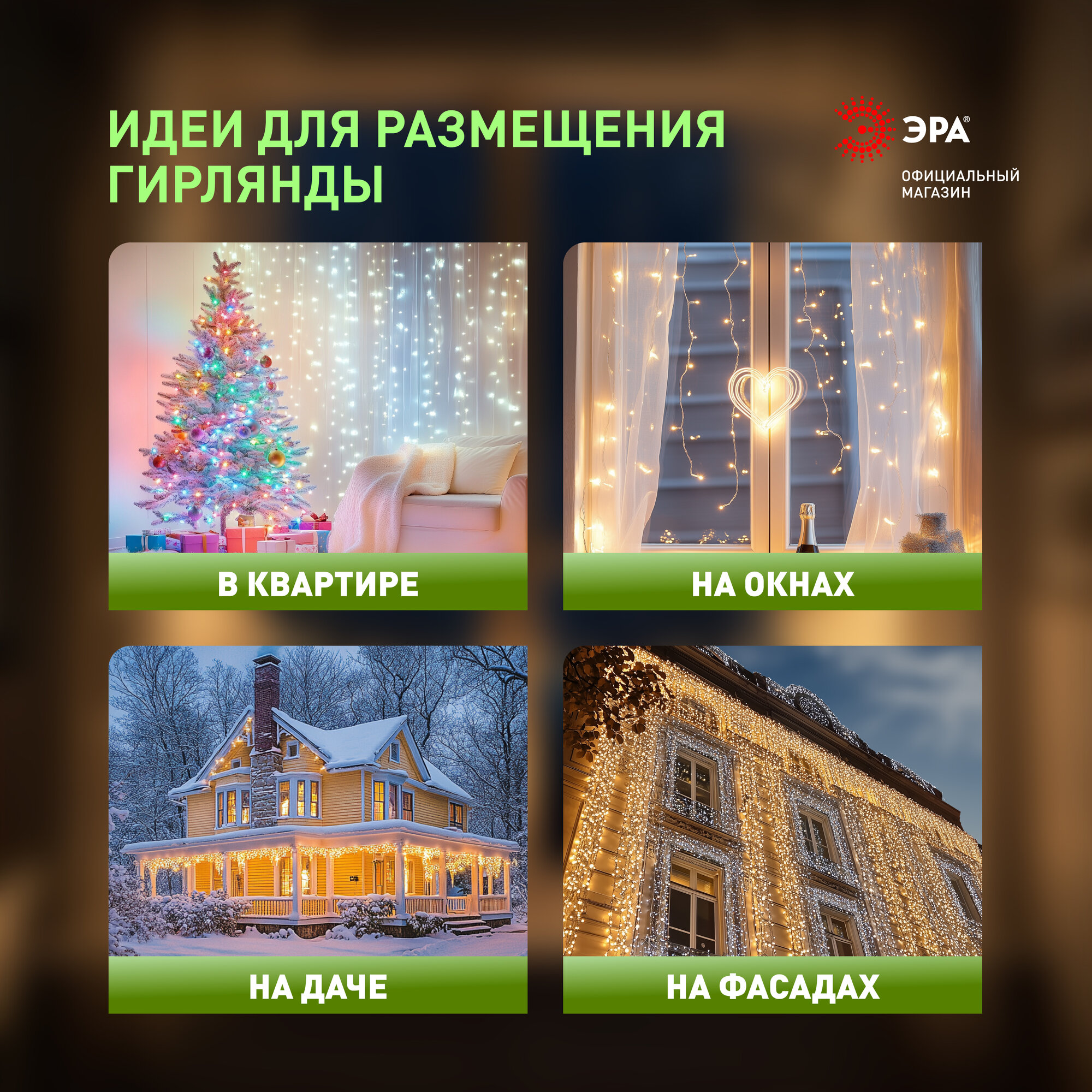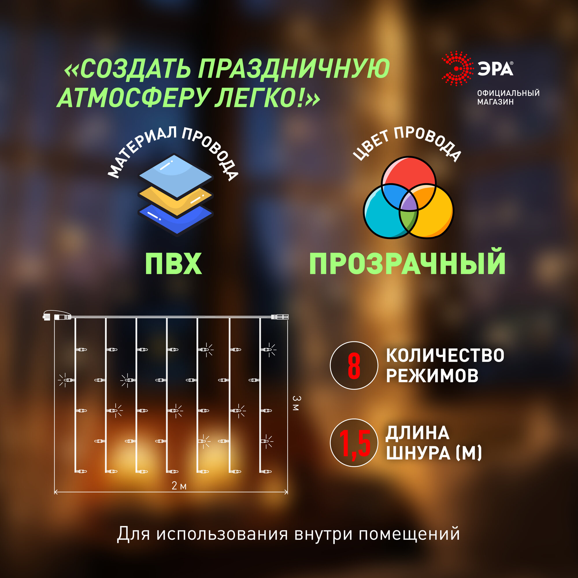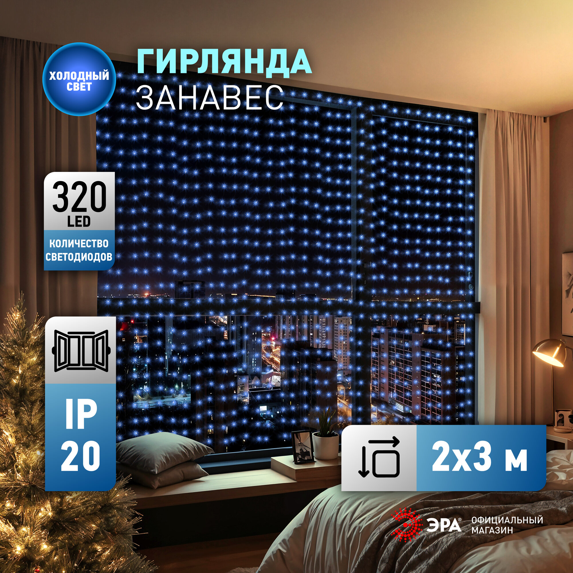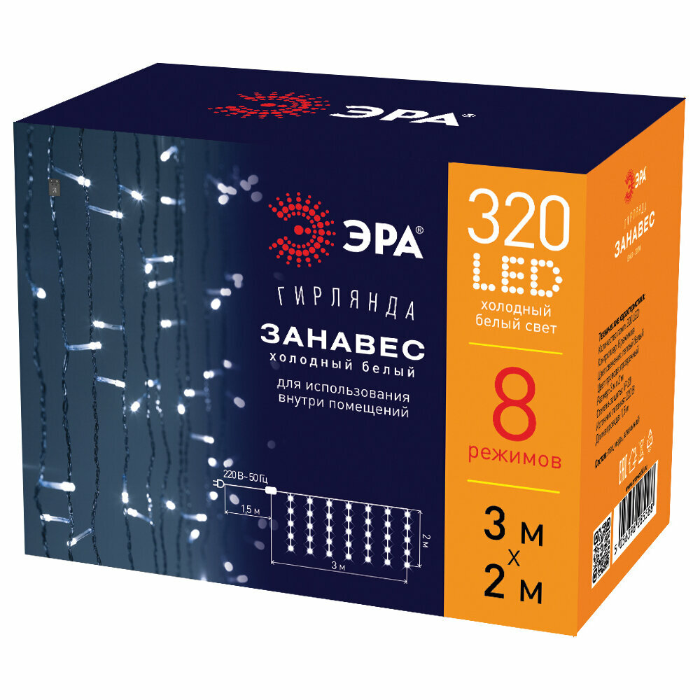 Гирлянда светодиодная дождь занавес ЕNIGW - 320W ЭРА холодный свет от сети 3 м х 2 м, 320 LED, 8 режимов интересное: