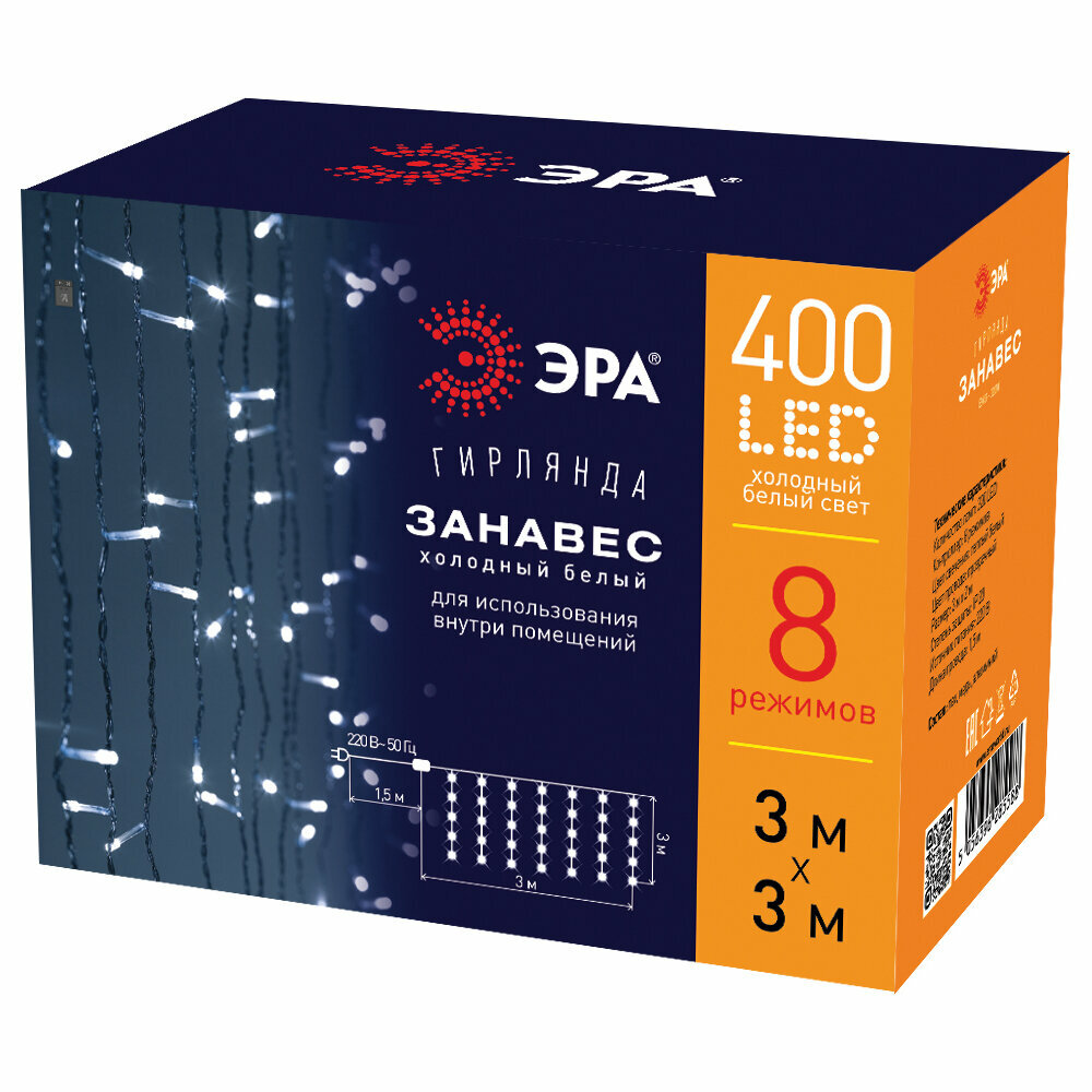Гирлянда светодиодная дождь занавес ЕNIGW - 400W ЭРА холодный свет от сети 3 м х 3 м, 400 LED, 8 режимов интересное: