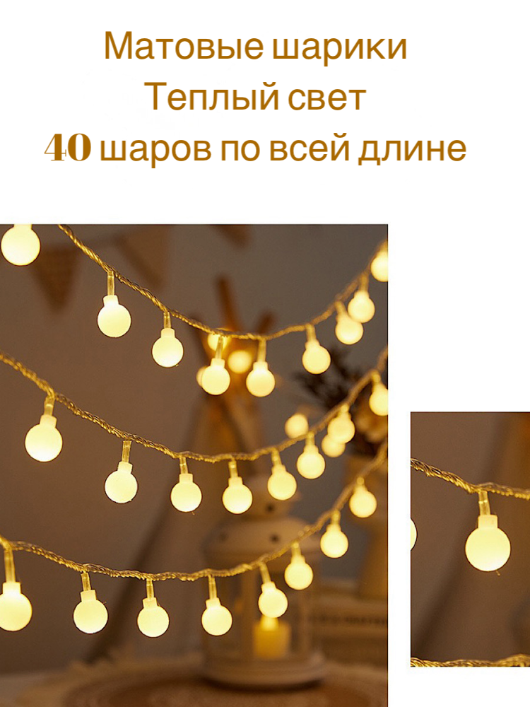 Новогодняя гирлянда на батарейках/ Гирлянда шарики с батарейками. Светодиодная гирлянда для улицы. интересное: