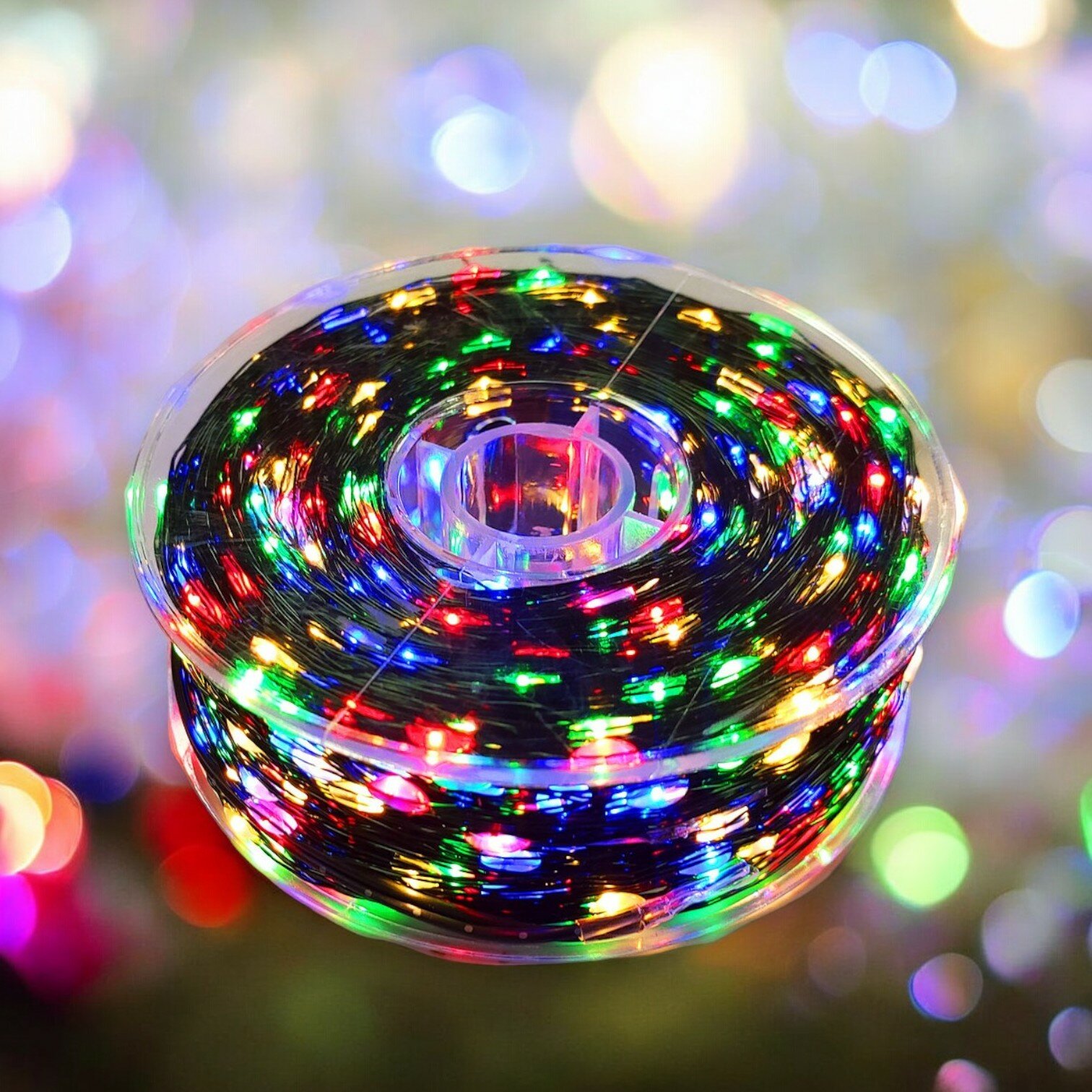 Купить Гирлянда Роса в катушке 100 метров, зеленый провод, разноцветный свет