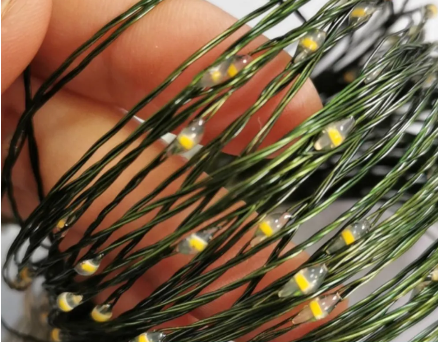Гирлянда Роса в катушке 100 метров, зеленый провод, желтый свет