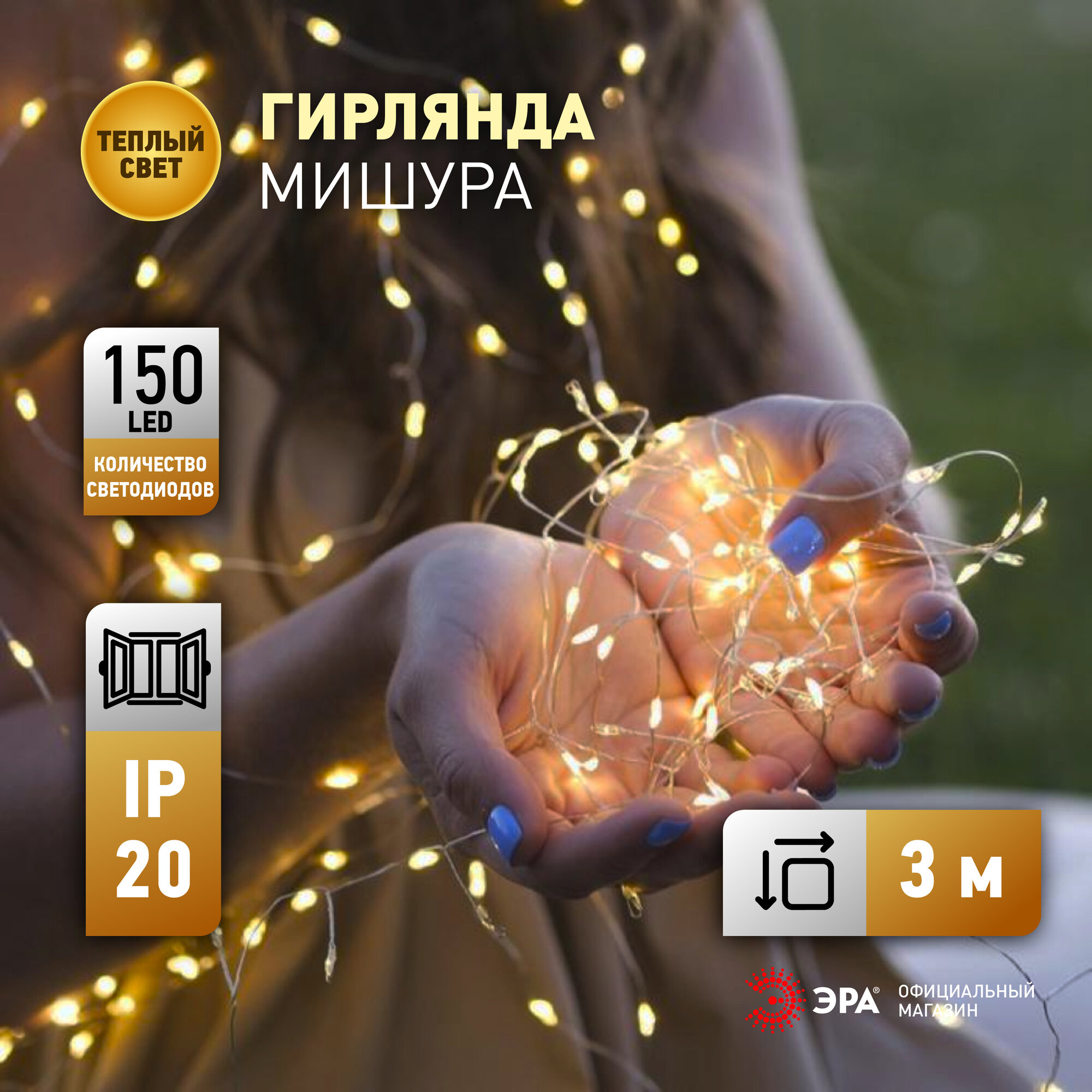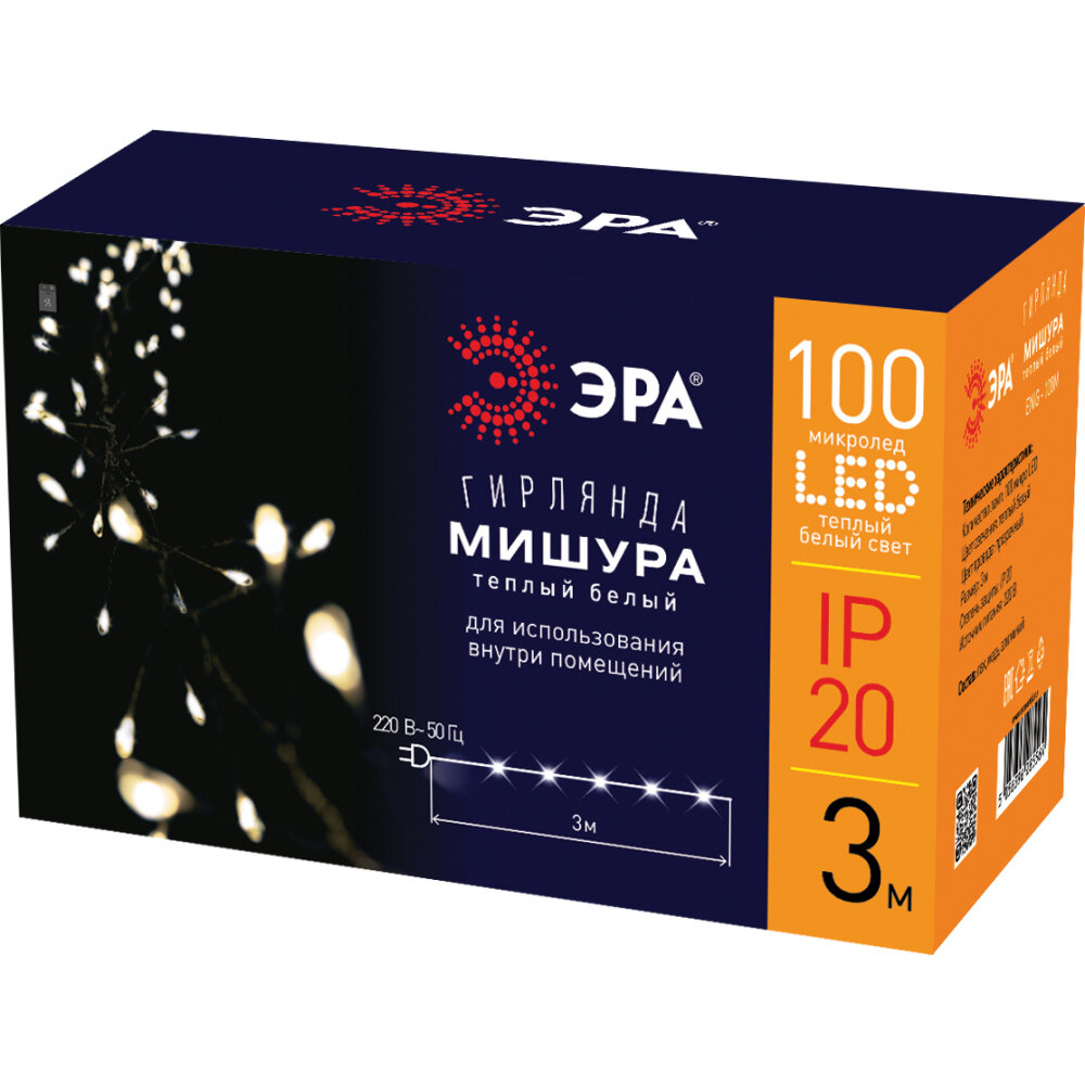 Купить Гирлянда светодиодная нить мишура ЕNIG-100M ЭРА теплый свет от сети 3 м, 100 microLED