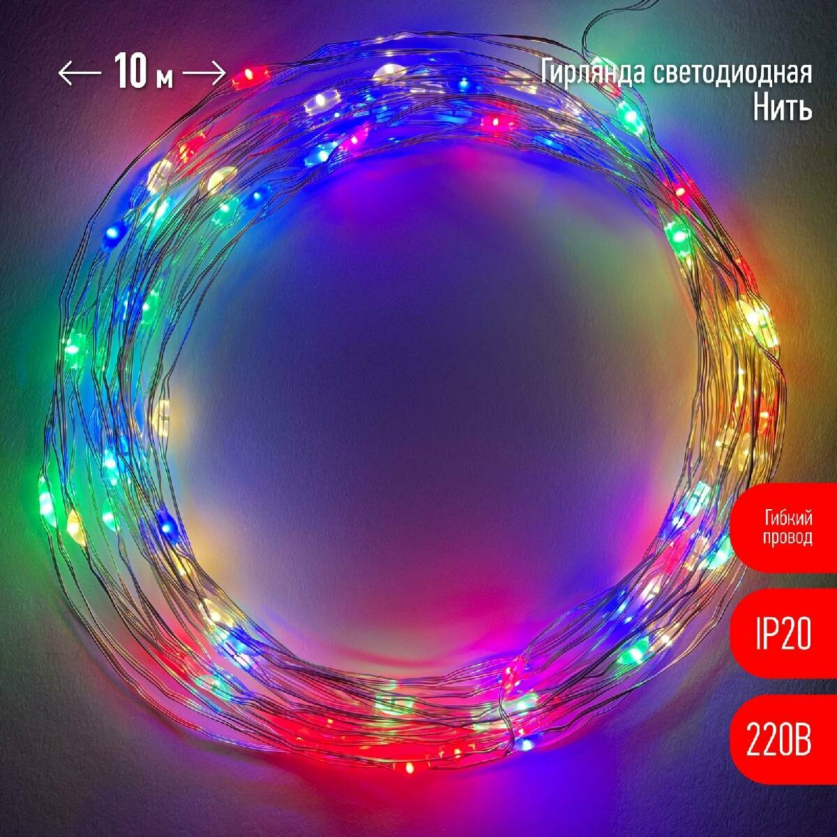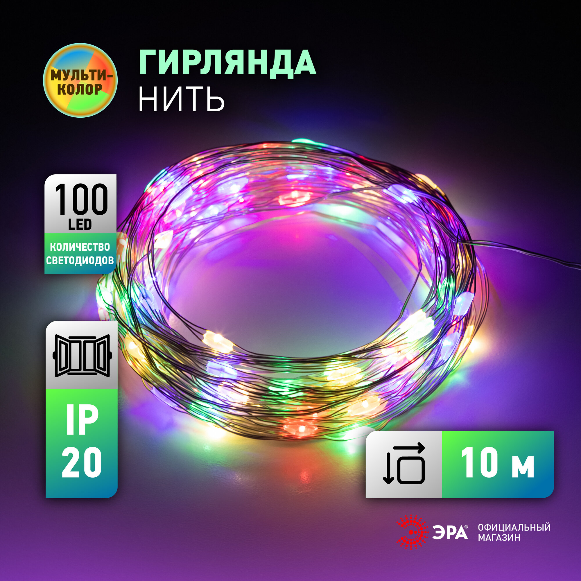 Гирлянда светодиодная нить ЭРА ENIN-10NM электрогирлянда роса от сети 10 м, 100 LED интересное: