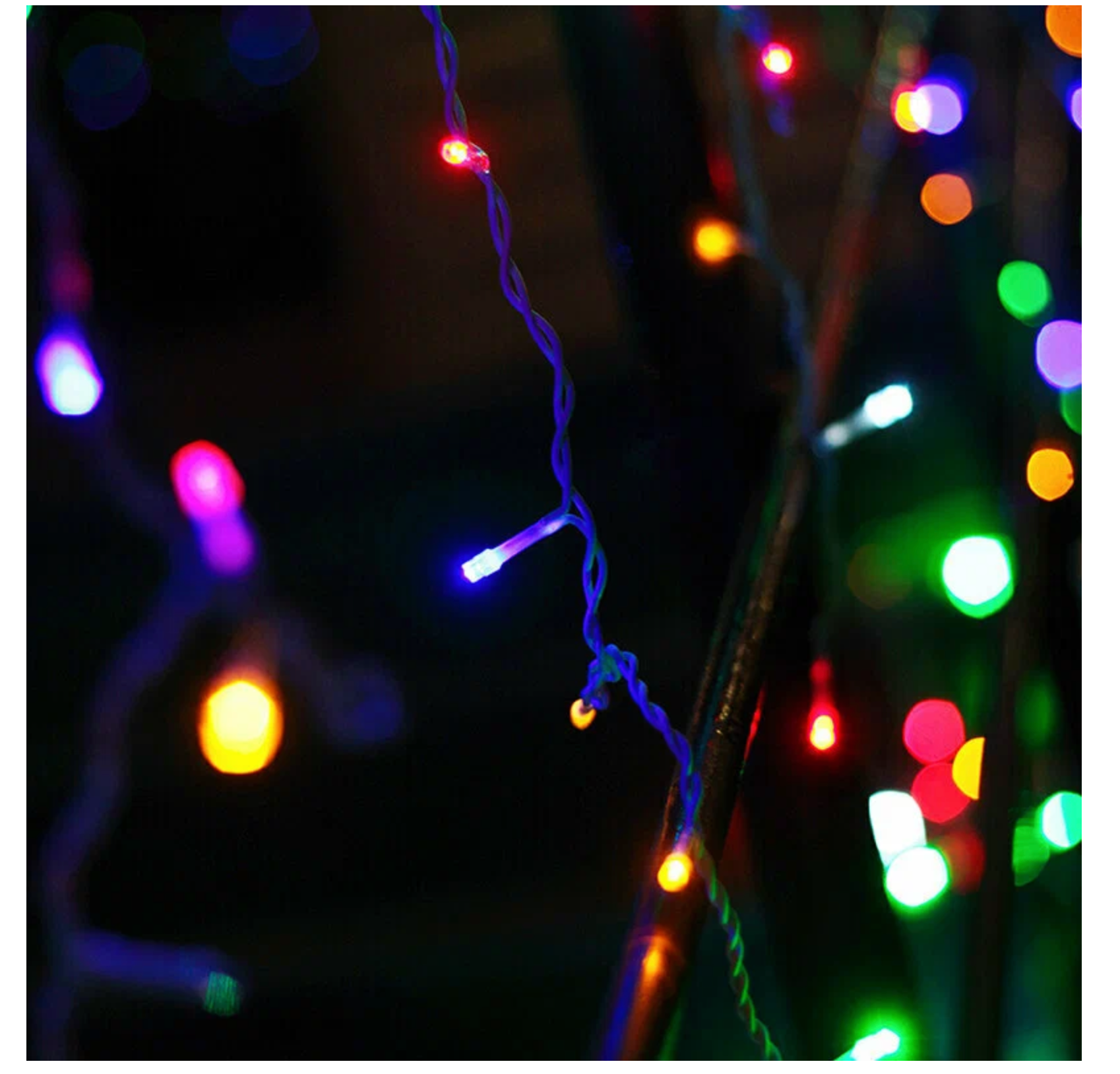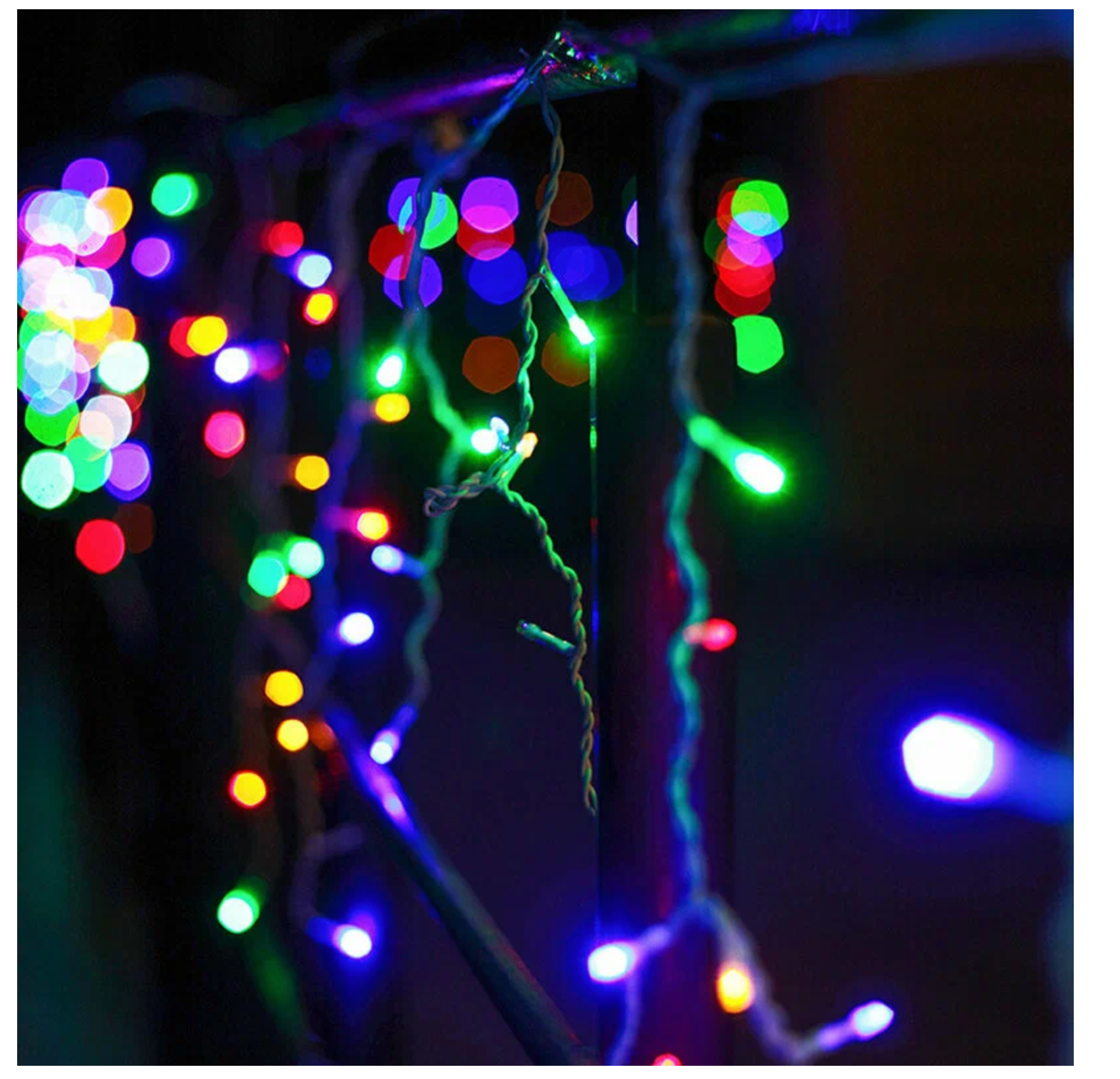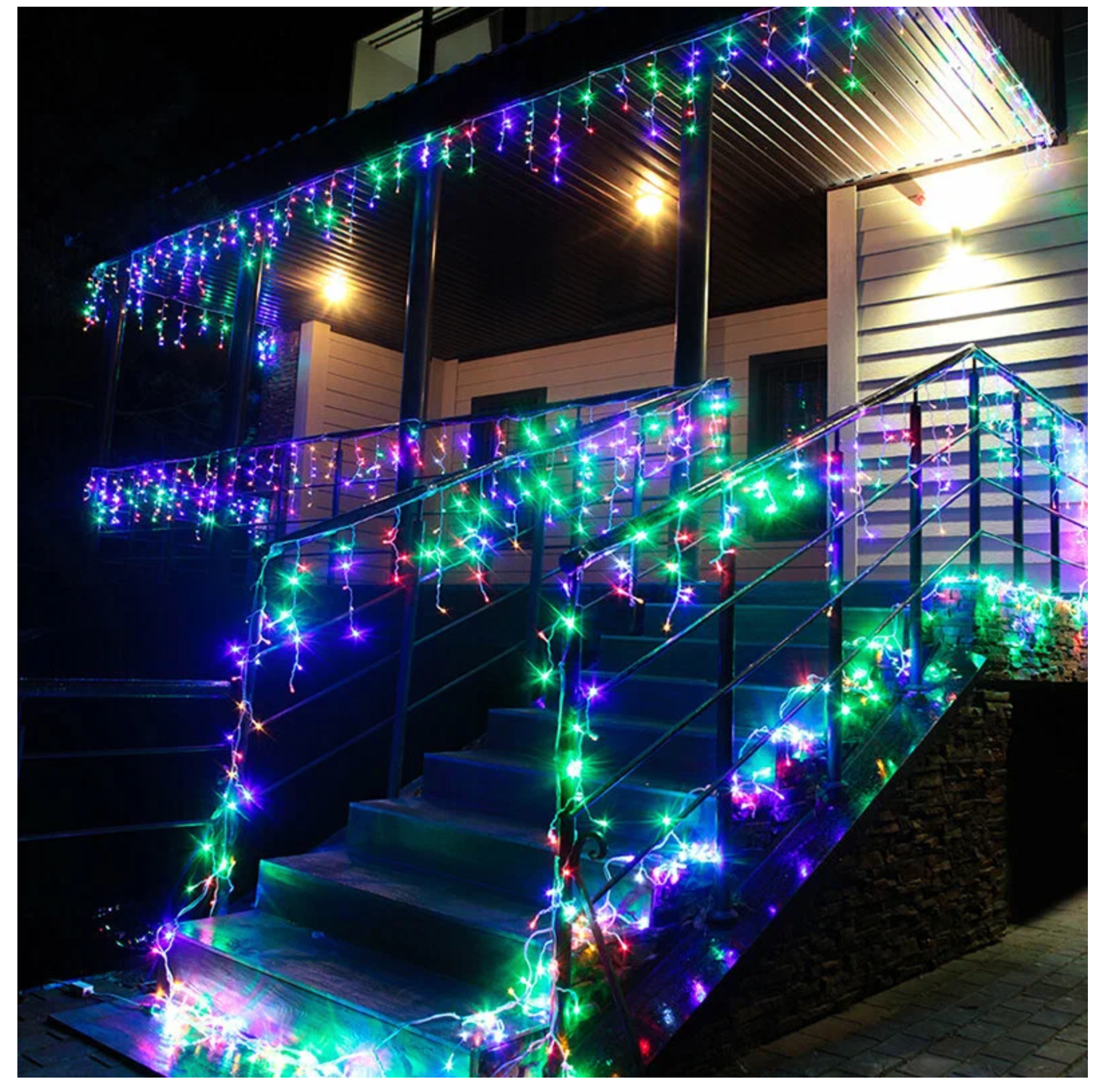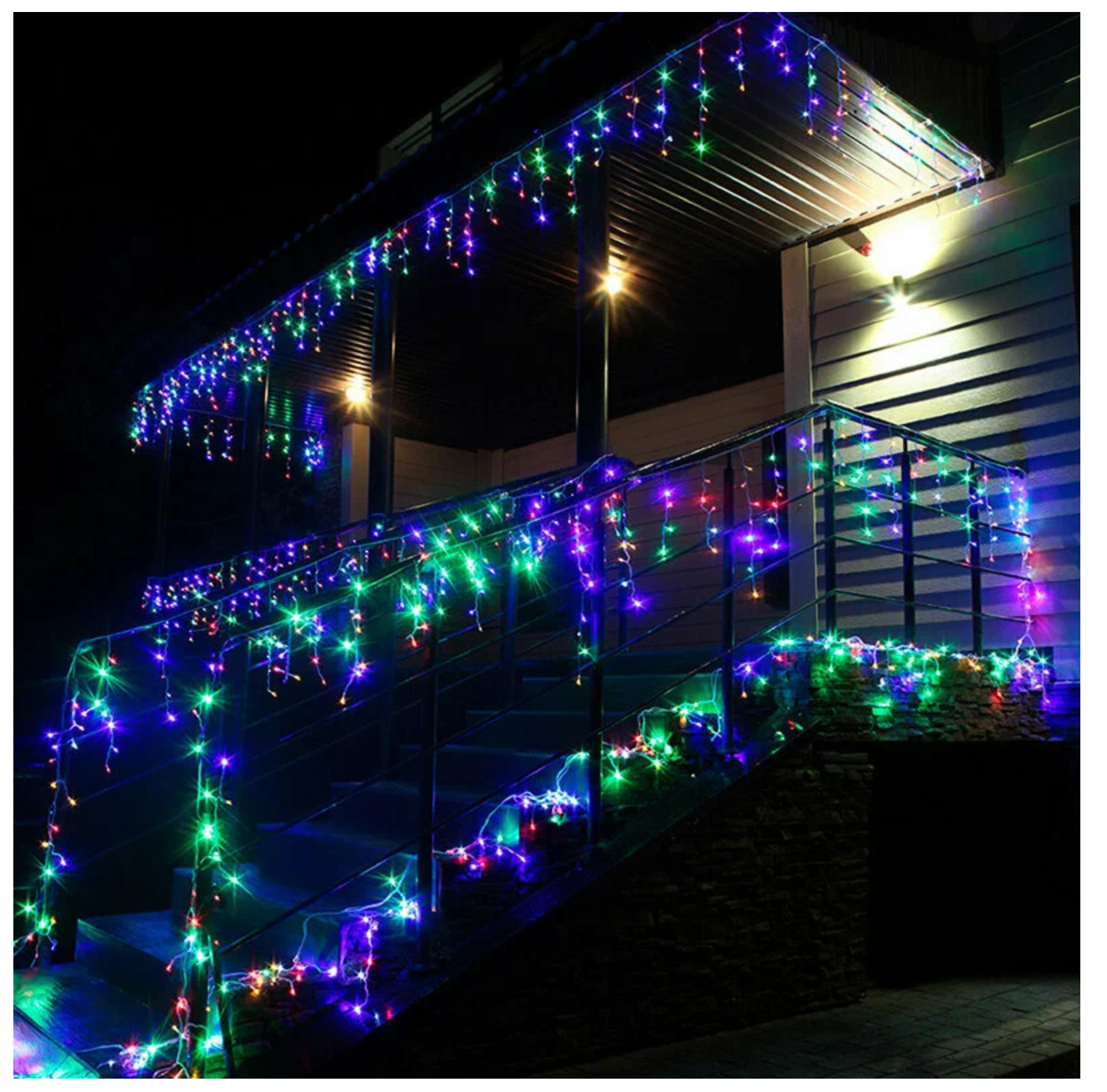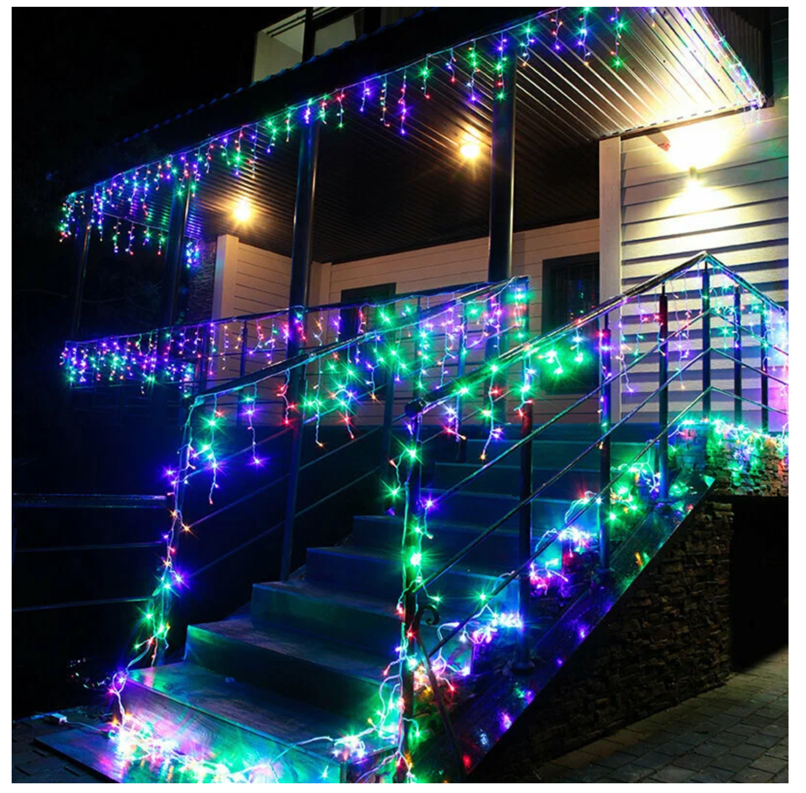 Новогодняя уличная гирлянда Бахрома занавес для дома 6 м, 500 ламп, Разноцветный, белый провод, IP67, от сети