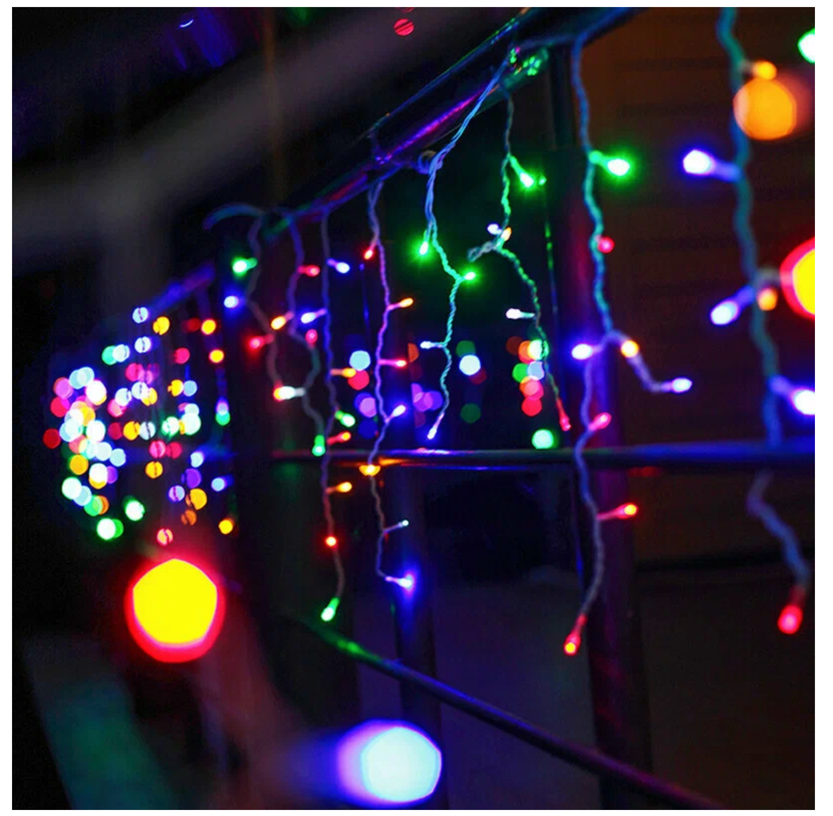 Купить Новогодняя уличная гирлянда Бахрома занавес для дома 3 м, 300 ламп, разноцветный, белый провод, IP67, от сети