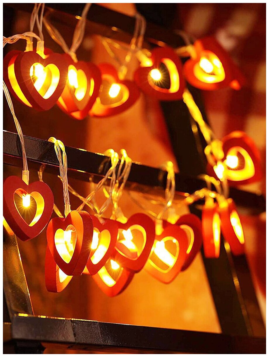 Купить Светодиодная LED гирлянда нить красные сердечки, 3 м 20 ламп
