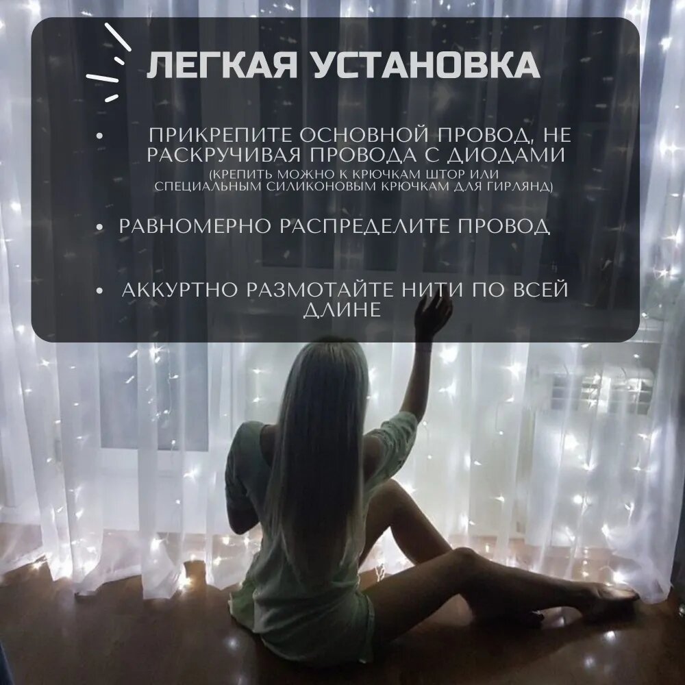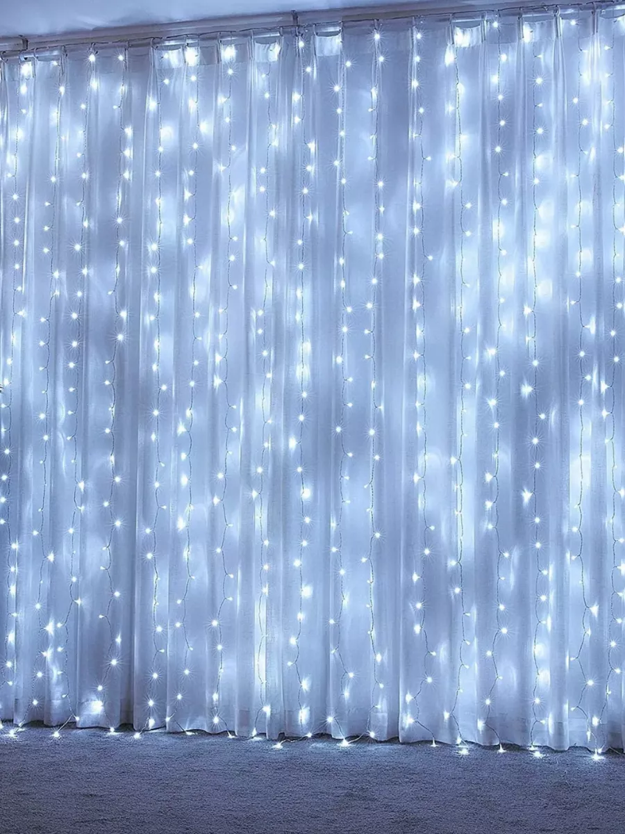 Гирлянда-штора 3х2 метра, 8 режимов, холодный белый, от сети интересное: