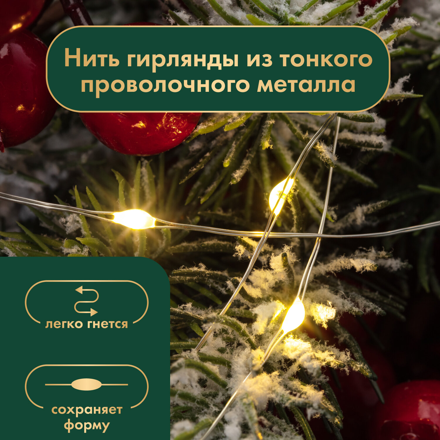 Гирлянда Роса 10м, питание от батареек АА, светодиодная