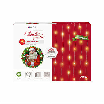 Электрогирлянда GLOS занавес GL2016-WW, 3 х 1 х 1 м, 1 х 1 м, 400 ламп, теплый белый/прозрачный провод интересное: