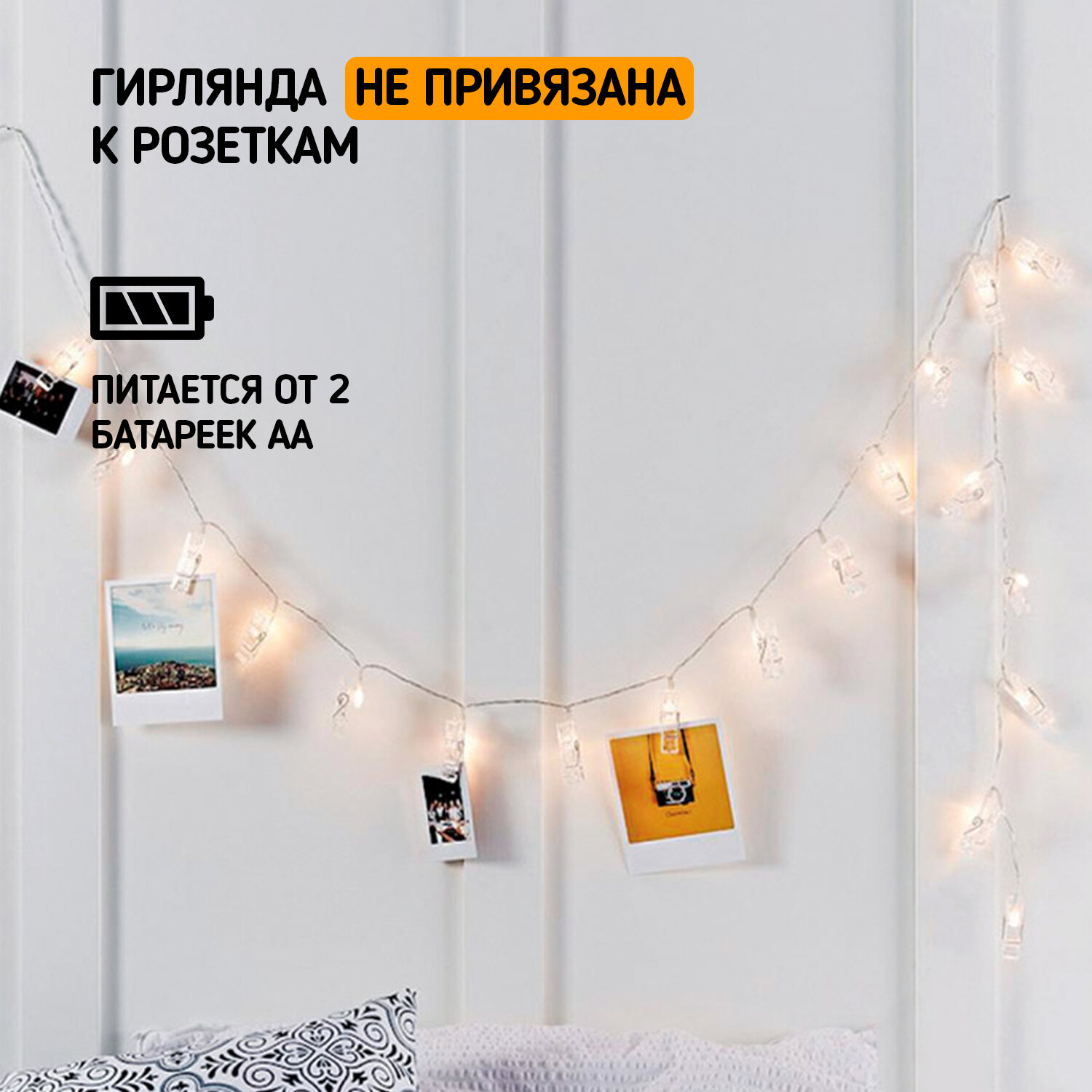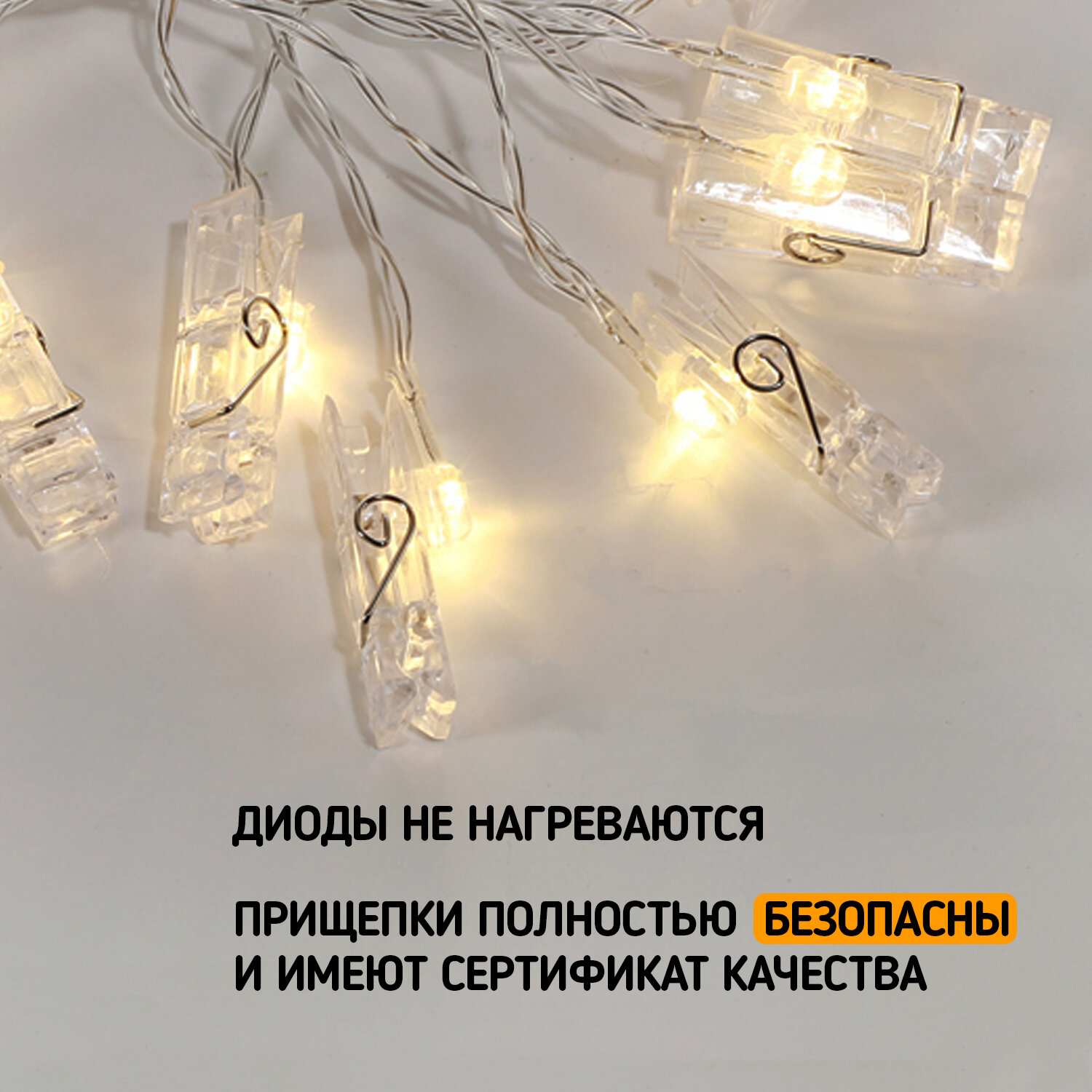 Гирлянда светодиодная «Прищепки» 10 LED, 1.5 м, прозрачный ПВХ, теплый белый цвет свечения, 2 х АА (батарейки не в комплекте) NEON-NIGHT интересное: