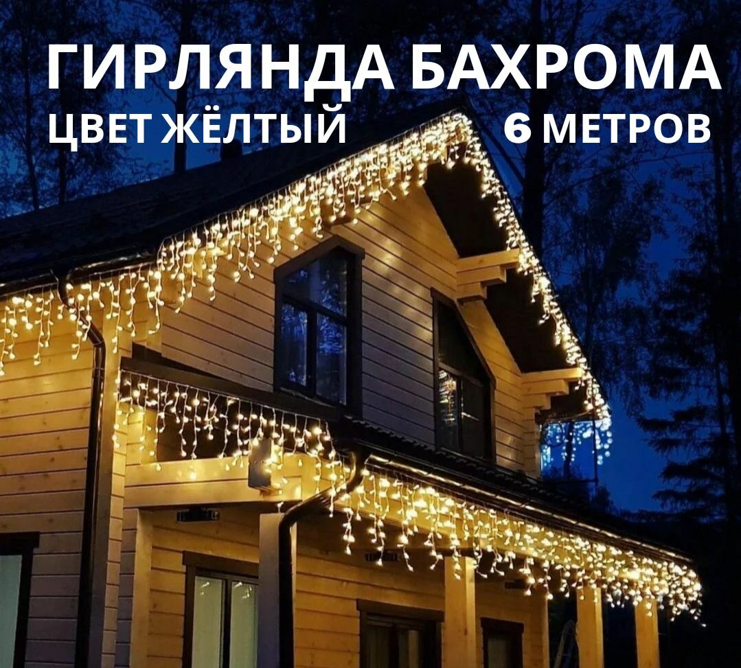 Электрогирлянда / Гирлянда уличная бахрома, 6 метров, цвет желтый интересное: