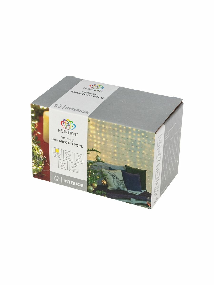Гирлянда штора "LED Дождь из росы" 6х3, теплый белый Neon-Night интересное: