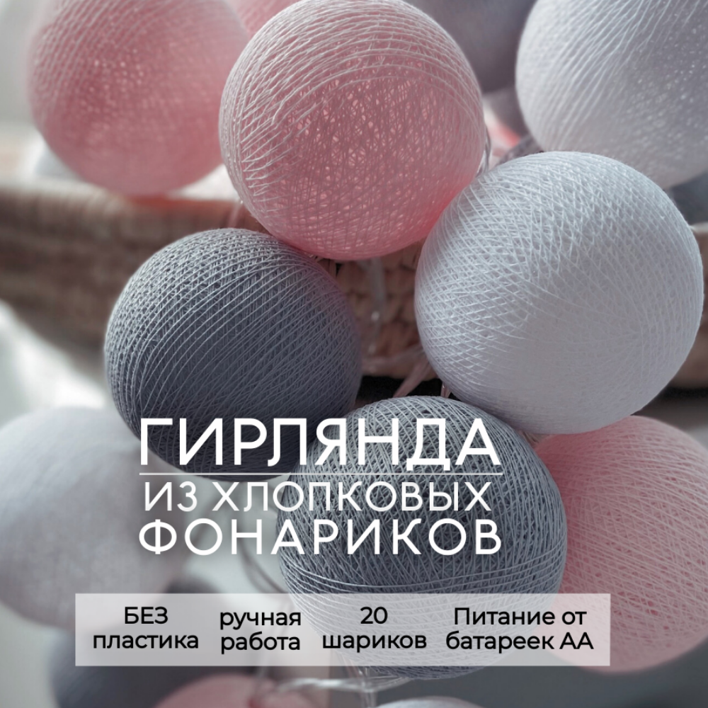 СохранитьЭлектрогирлянда "Розово-серая" LED 20 шариков от батареек, 3,5 м интересное: