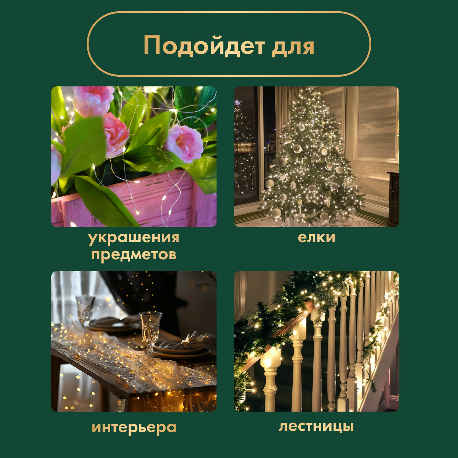 Гирлянда Роса 10м, питание от батареек АА, светодиодная