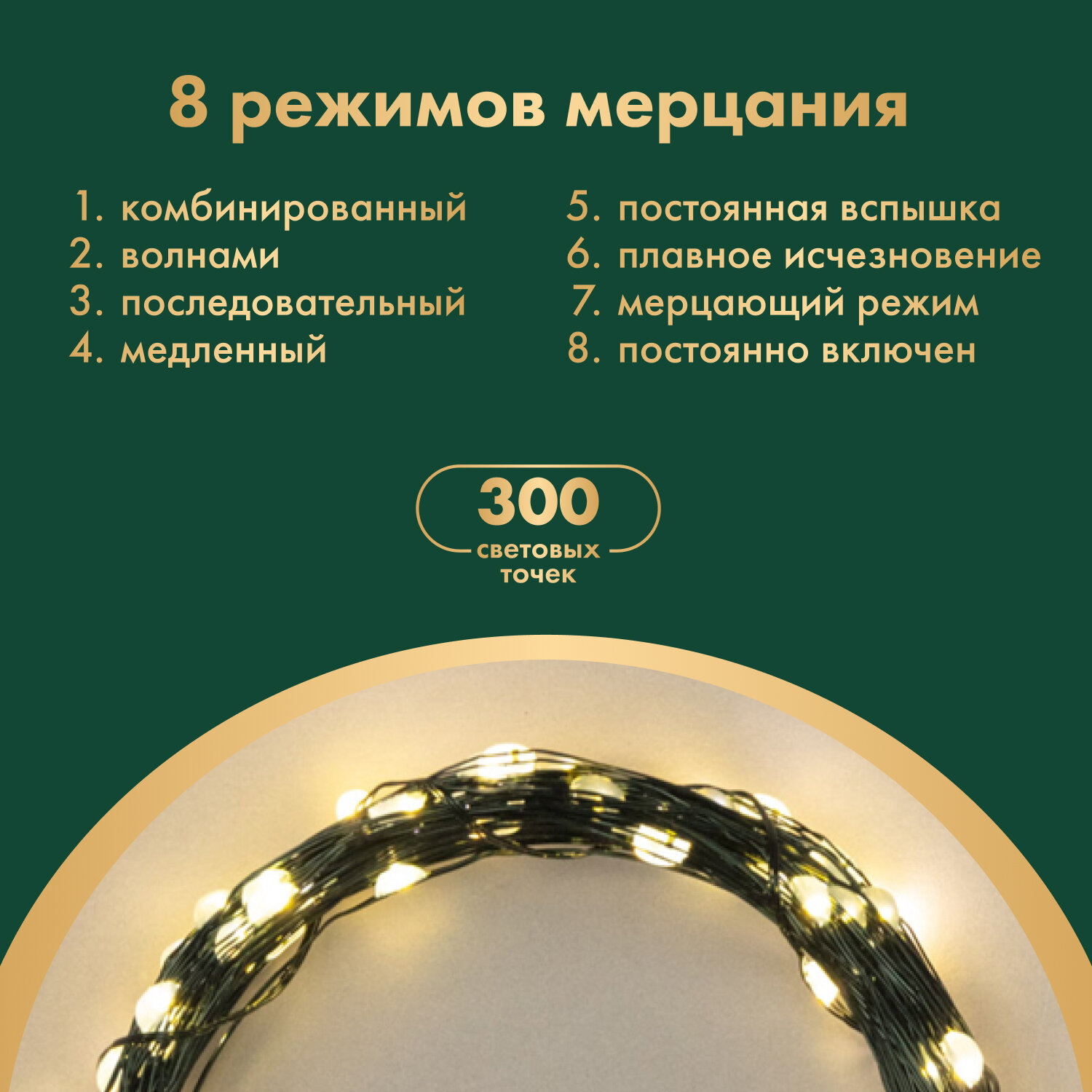 Гирлянда Neon-Night "Роса", тёплый белый свет, 30 метров, 300 светодиодов интересное: