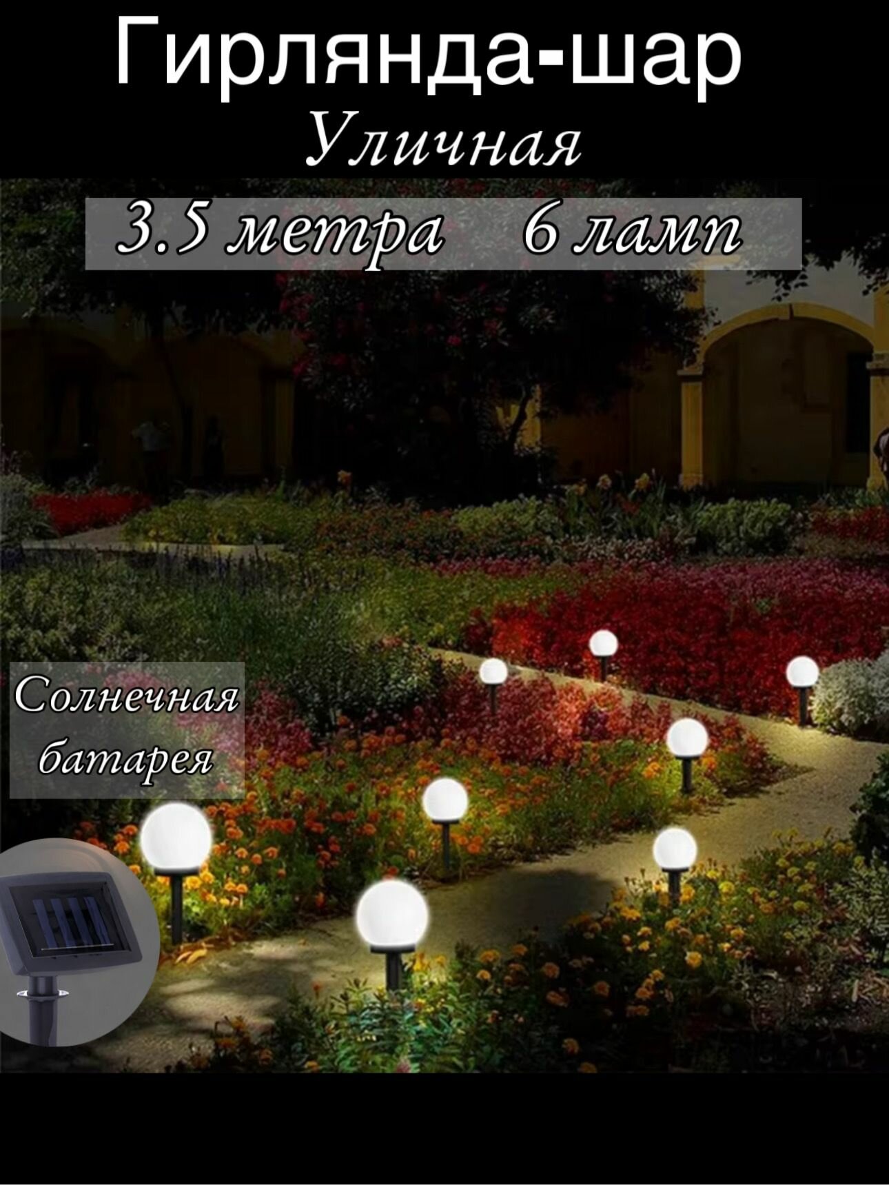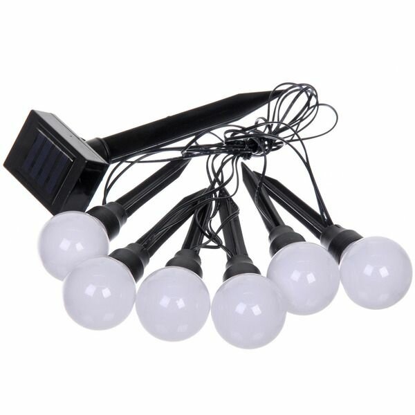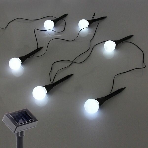 Гирлянда для улицы "Светящийся шар" 3,5 м 6 ламп LED (d-5) чёрн. пров, 1 реж, IP-54, белый (солнечная батарея) интересное: