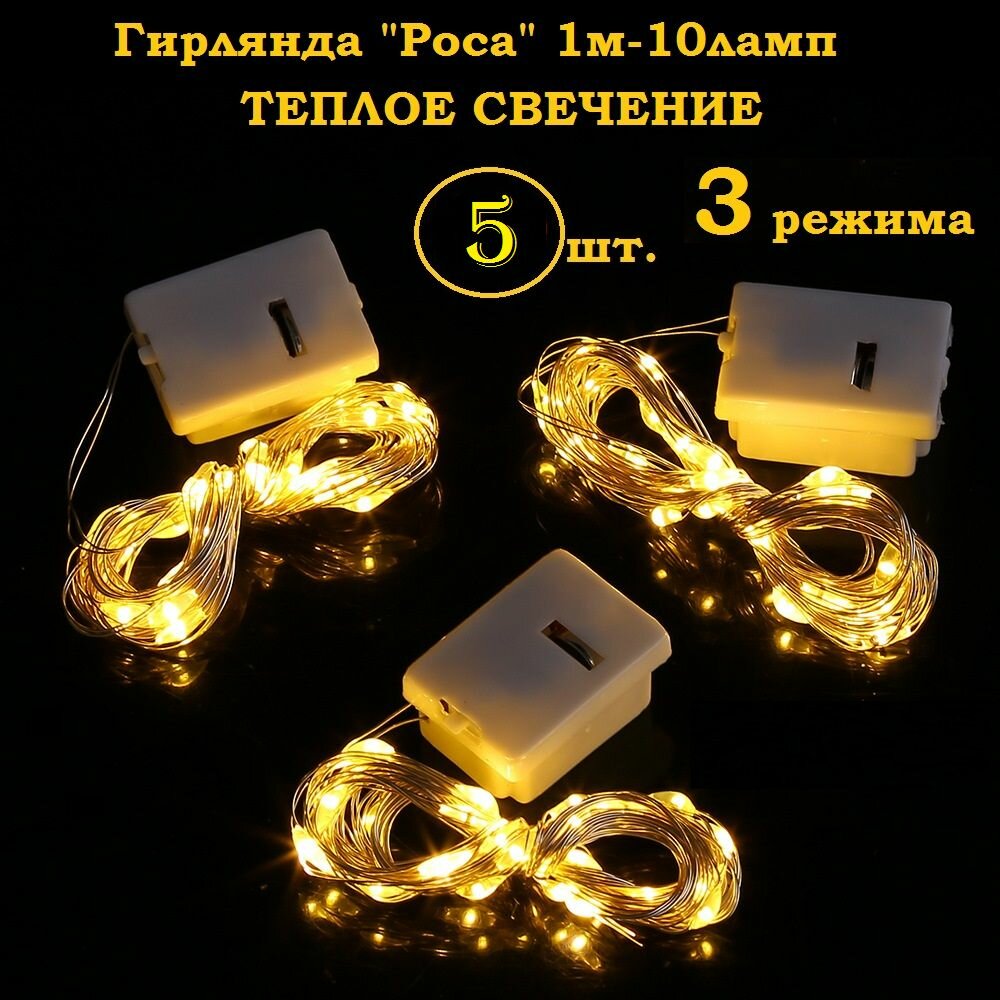 Купить Декоративная светодиодная подсветка Гирлянда Роса 1метр-10 ламп Теплый 5 штук в упаковке