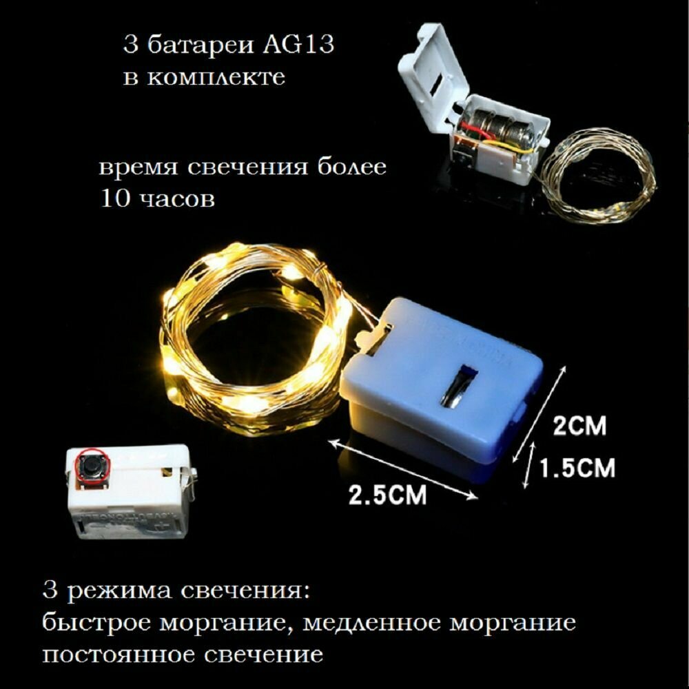 Декоративная светодиодная подсветка Гирлянда Роса 1метр-10 ламп Теплый 5 штук в упаковке интересное: