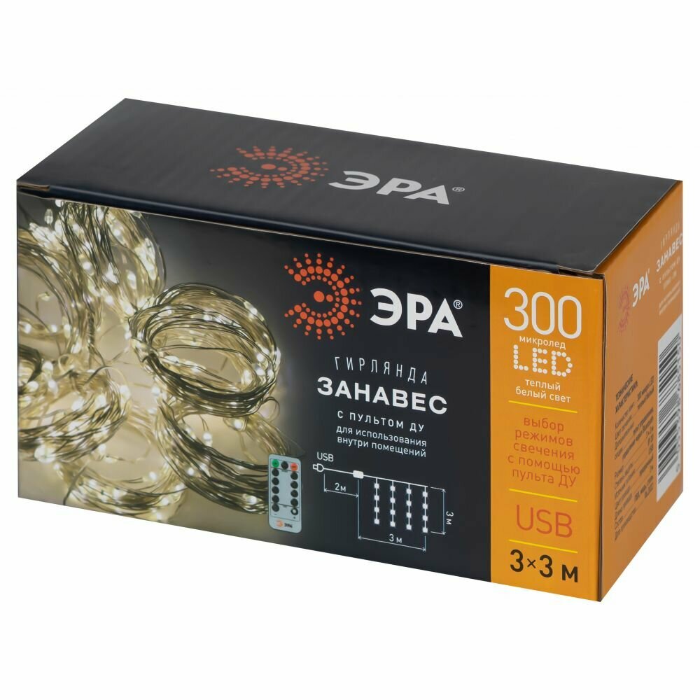 Купить Гирлянда светодиодная ЭРА ЕGNIG - ZW Занавес теплый свет от сети USB с пультом 3х3 м, 300 LED