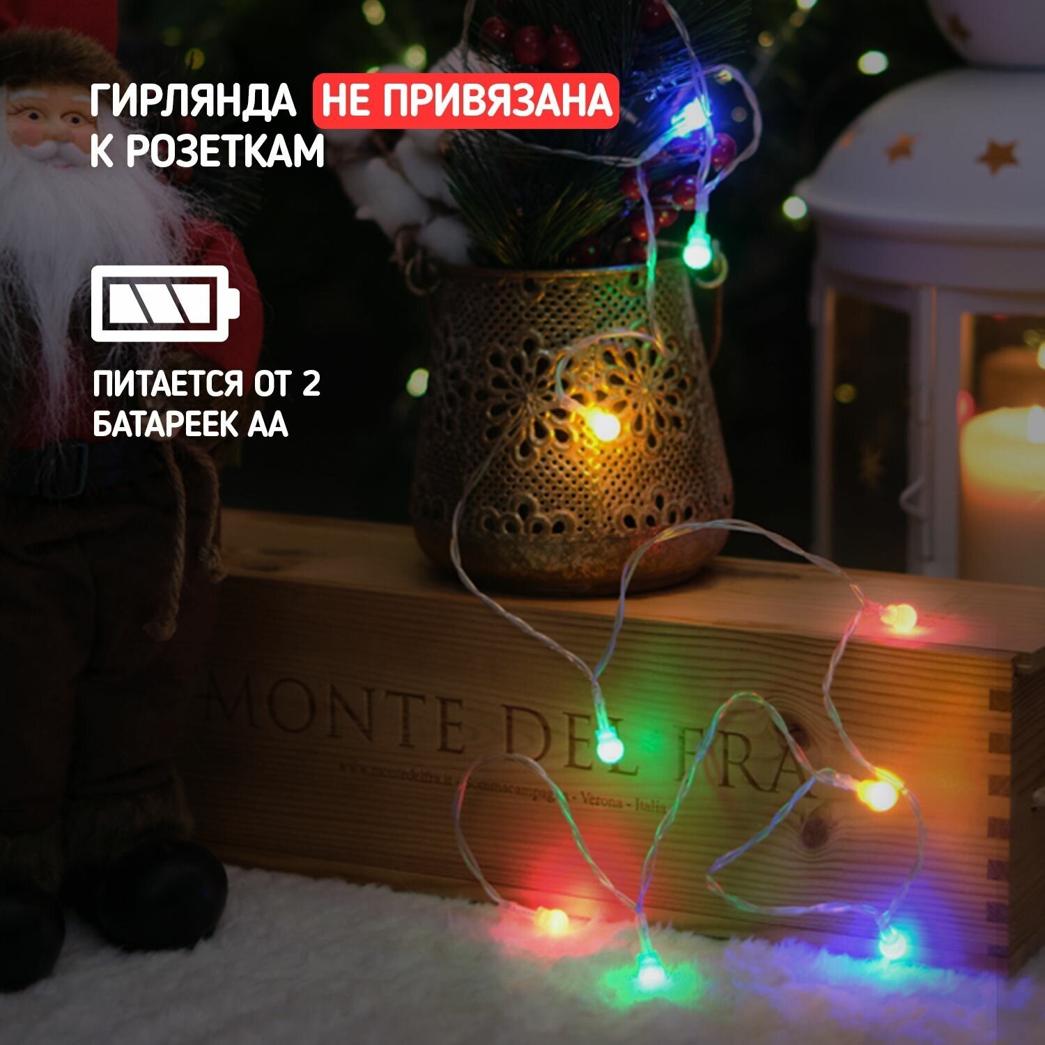 Гирлянда Роса 10м, питание от батареек АА, светодиодная