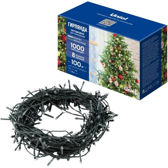 СохранитьСветодиодная гирлянда Uniel ULD-S10000-1000/DGA WHITE IP20, 100м. 1000 светодиодов. Белый свет. Провод зеленый, UL-00009934 интересное: