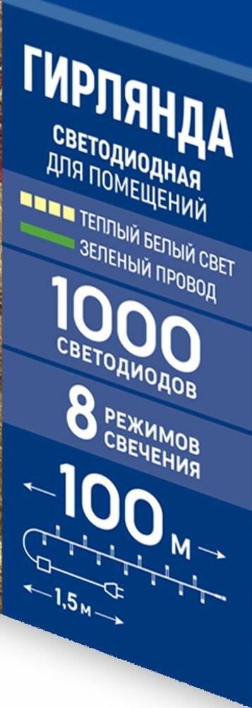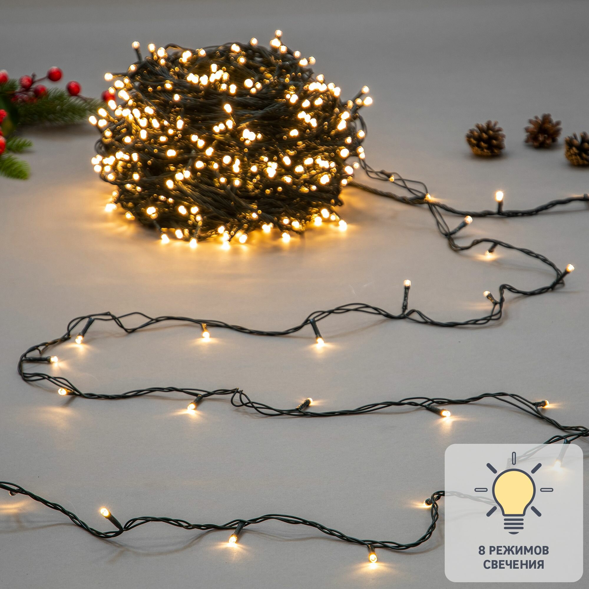 Купить Гирлянда светодиодная 1000LED 50W теплый белый свет IP20 100 000мм зеленый провод с контроллером ULD-S10000-1000/DGA WARM WHITE IP20