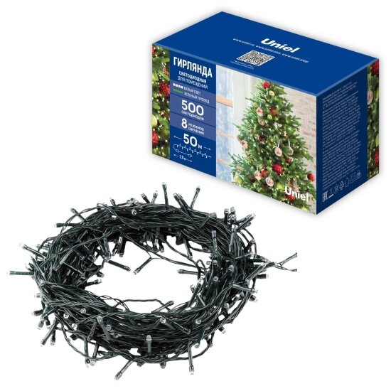 Гирлянда Uniel ULD-S5000-500/DGA UL-00009930, 50 х 0.025 х 0.03 м, 0.03 х 0.025 м, 500 ламп, теплый белый/зеленый провод