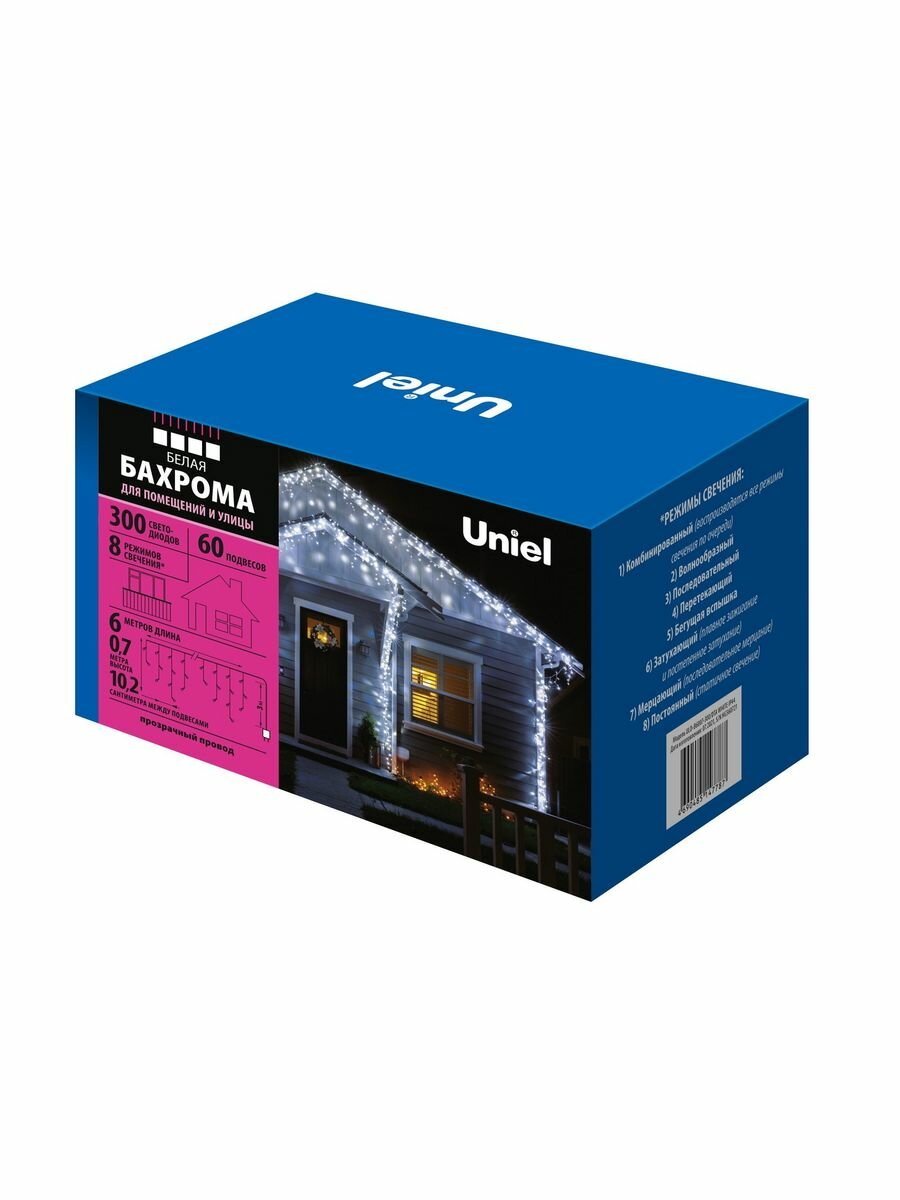 Купить Бахрома светодиодная Uniel ULD-B6007-300/DTA WHITE IP44, 6м. 300 светодиодов. Белый свет. Провод прозрачный, UL-00008557