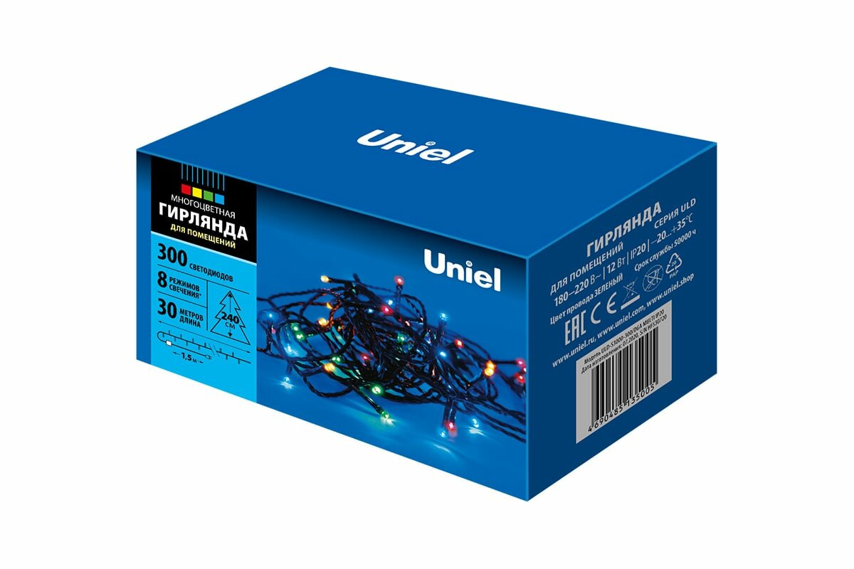 Гирлянда Uniel ULD-S3000-300/DGA UL-00007311, 30 х 0.03 м, 300 ламп, многоцветный/зеленый провод