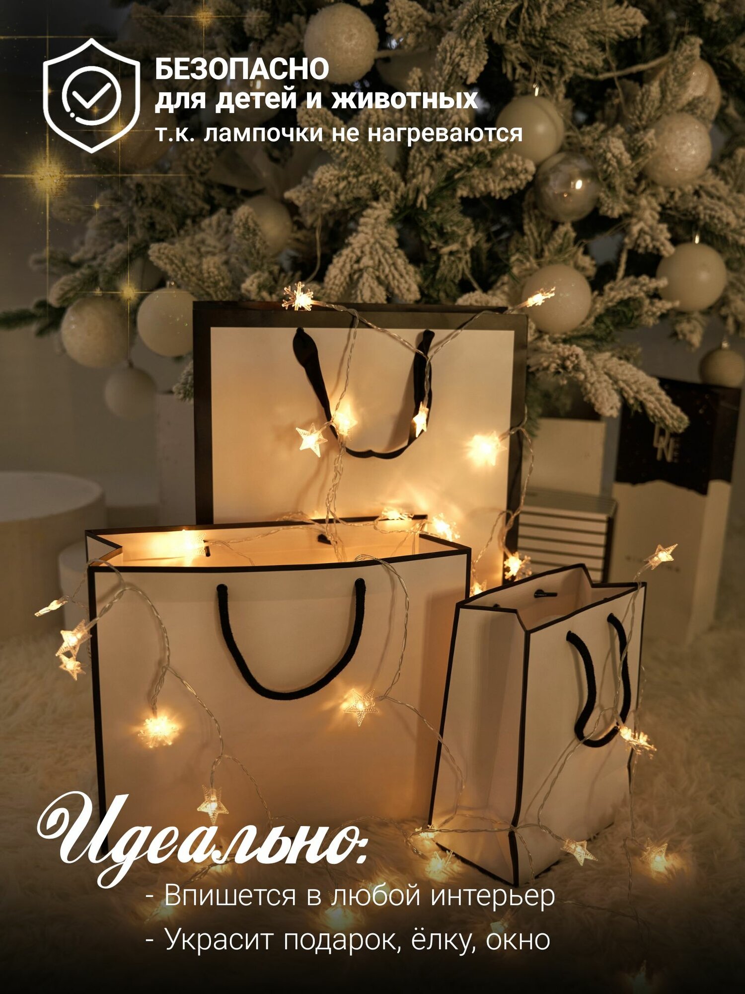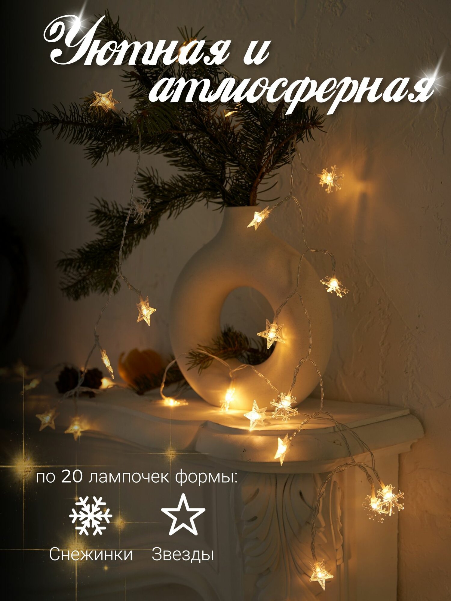 Гирлянда на батарейках / Светодиодная нить интерьерная / Новогодная гирлянда звезды и снежинкиля интересное: