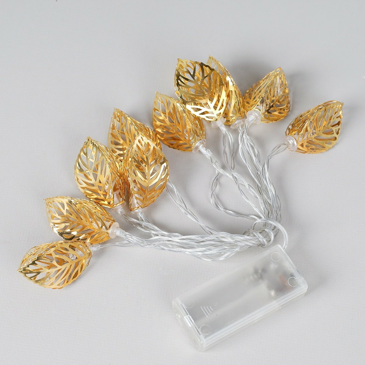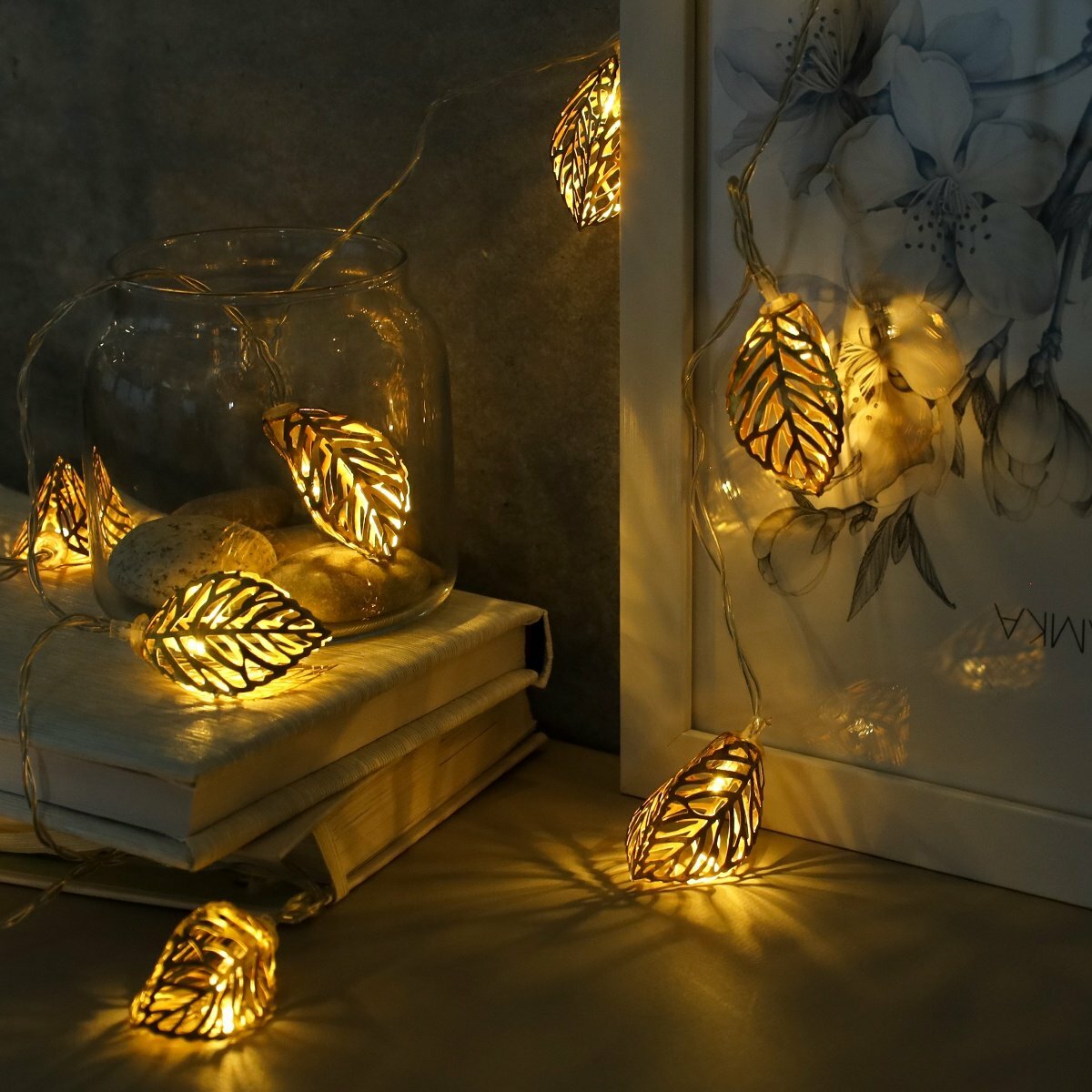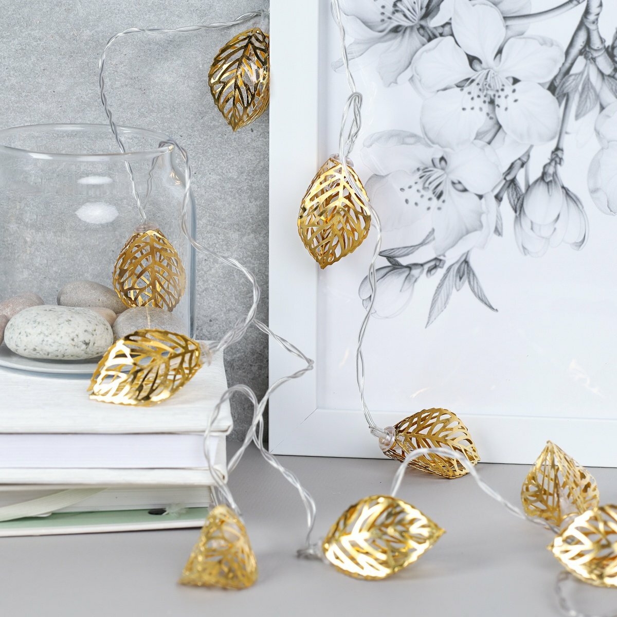 Купить Гирлянда "Листья" 2 метра, 10 светодиодов, бесцветный провод, теплый свет, от батареек