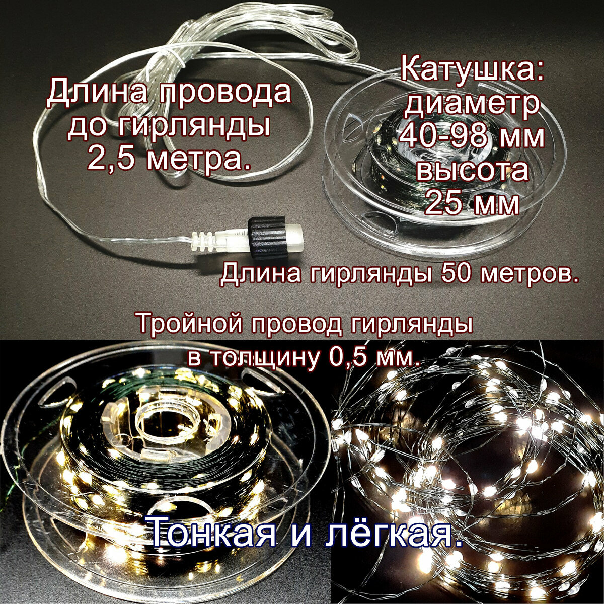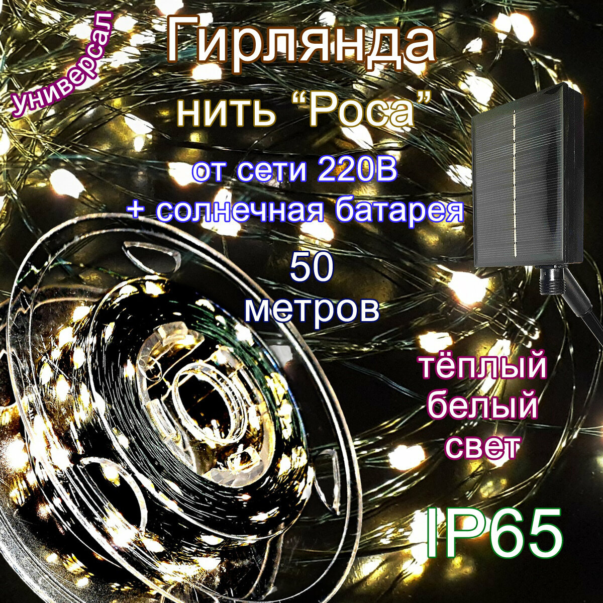 Уличная гирлянда "Нить Роса" на солнечной батарее, 50м, теплый свет интересное: