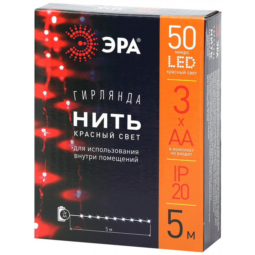 Купить Гирлянда светодиодная нить ENIN-5NR ЭРА от сети 5 м, красная, 50 LED