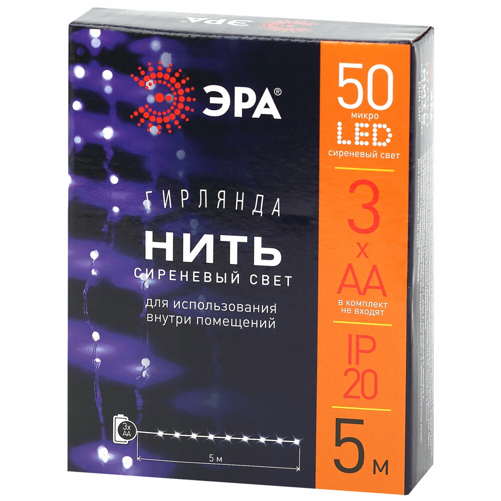 Купить Гирлянда светодиодная нить роса ENIN-5NP ЭРА от сети 5 м, фиолетовая, 50 LED