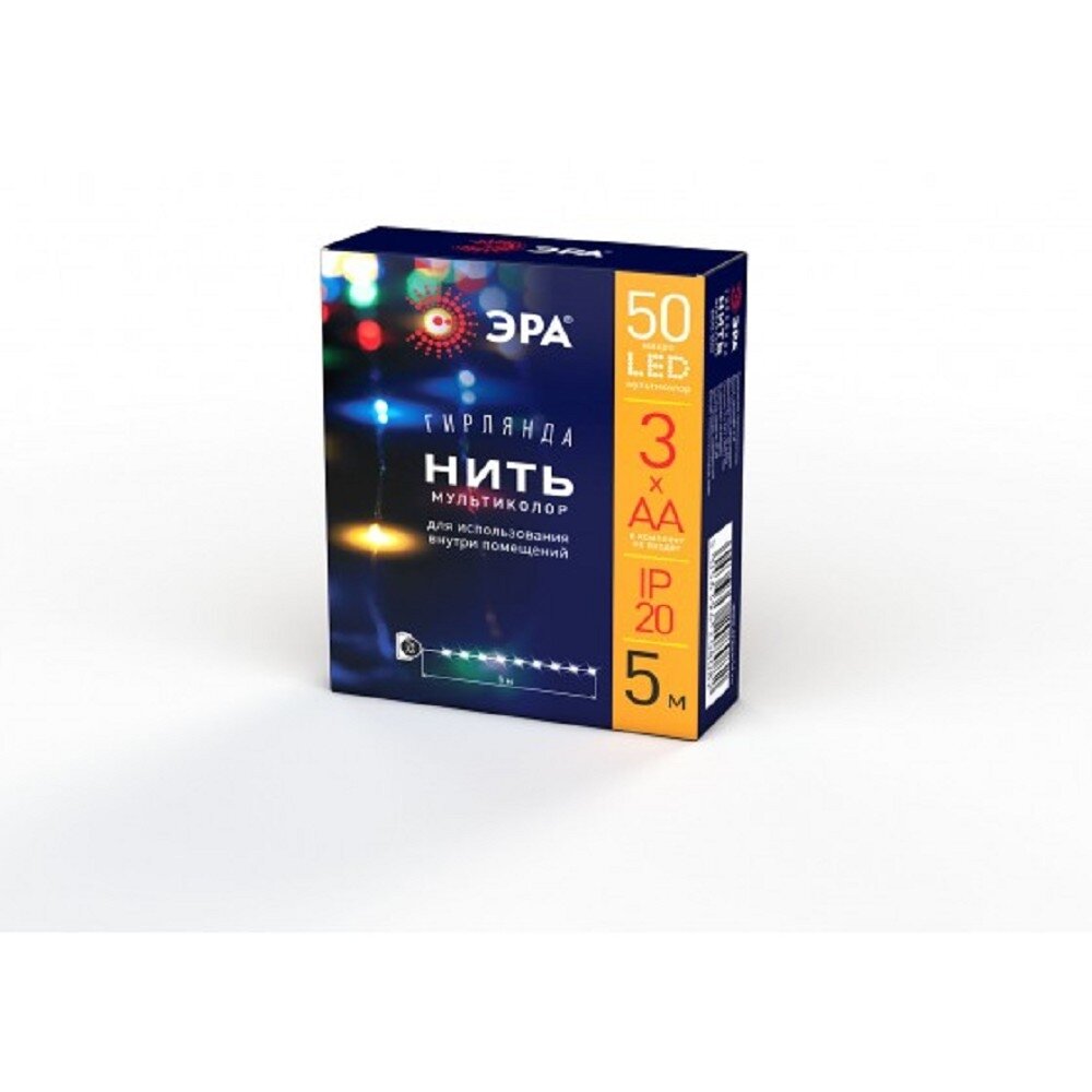 Купить Гирлянда светодиодная нить ENIN-5NM ЭРА на батарейках 5 м, мультиколор, 50 LED