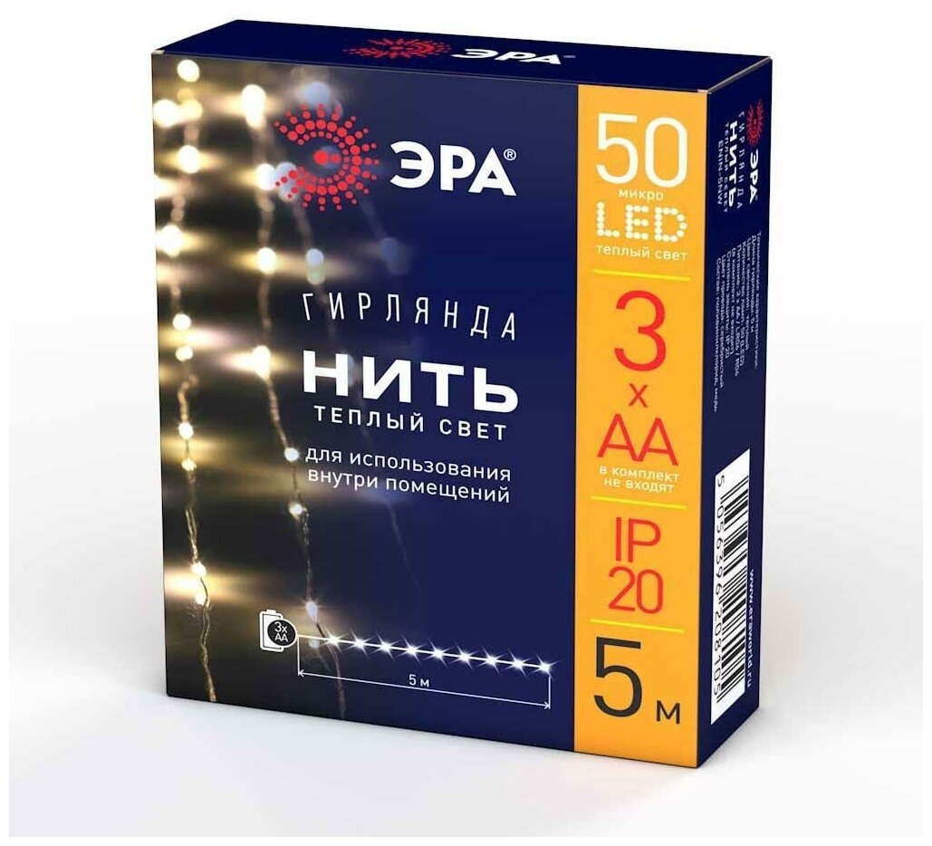 Купить ЭРА Светодиодная гирлянда ЭРА нить теплый свет ENIN -5NW Б0047960