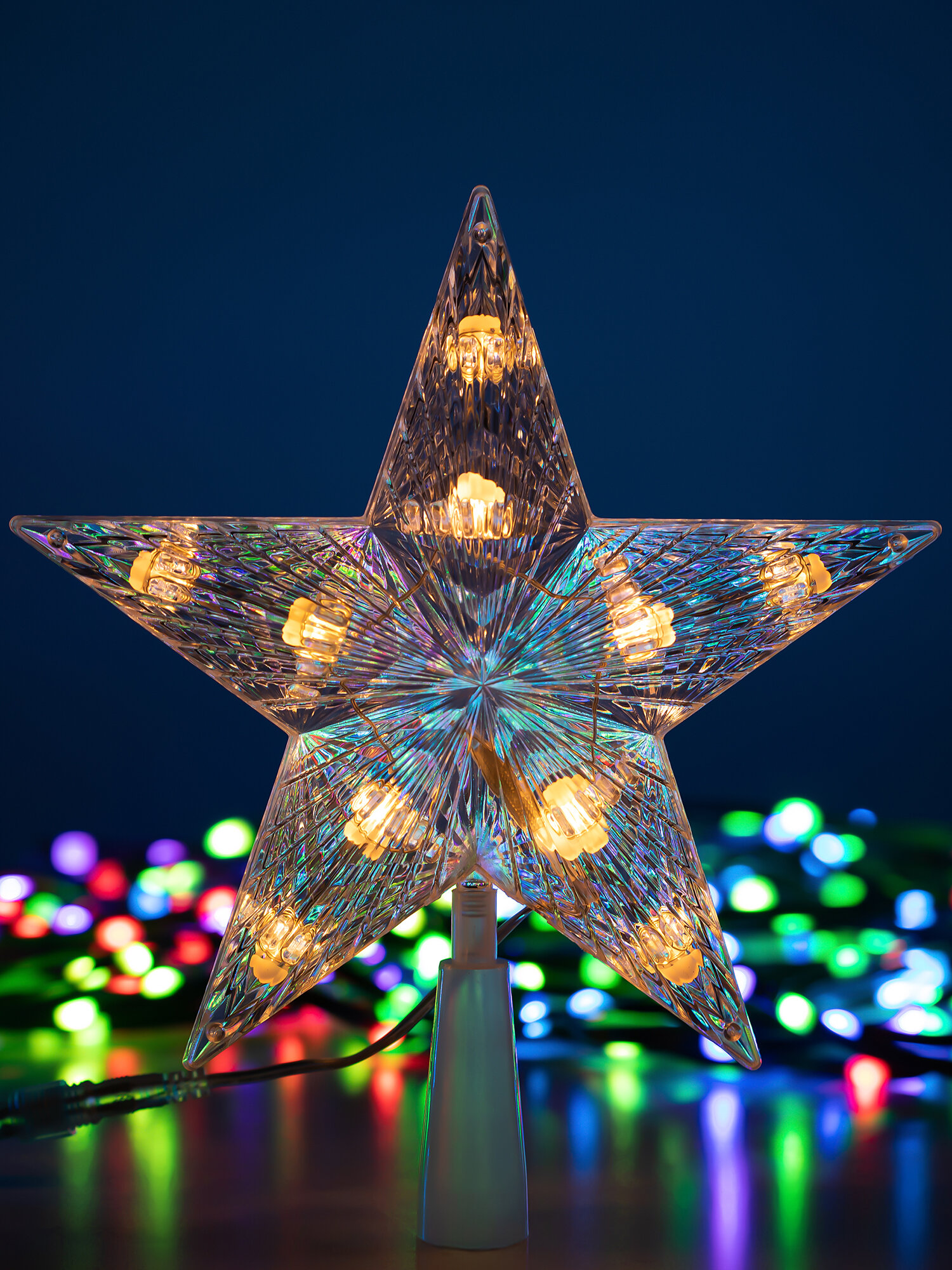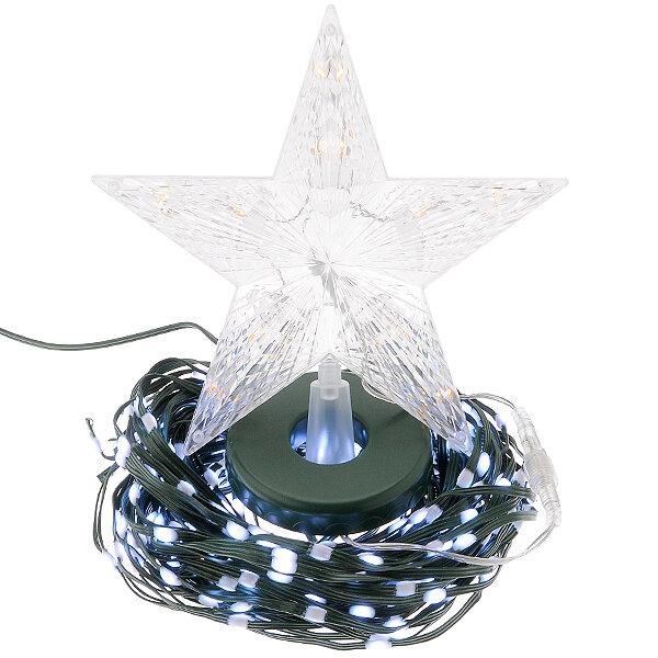 Гирлянда "Нить" 4 м с насадками "Звёздочка", IP20, прозрачная нить, 20 LED, свечение тёплое белое, 8 режимов, 220 В