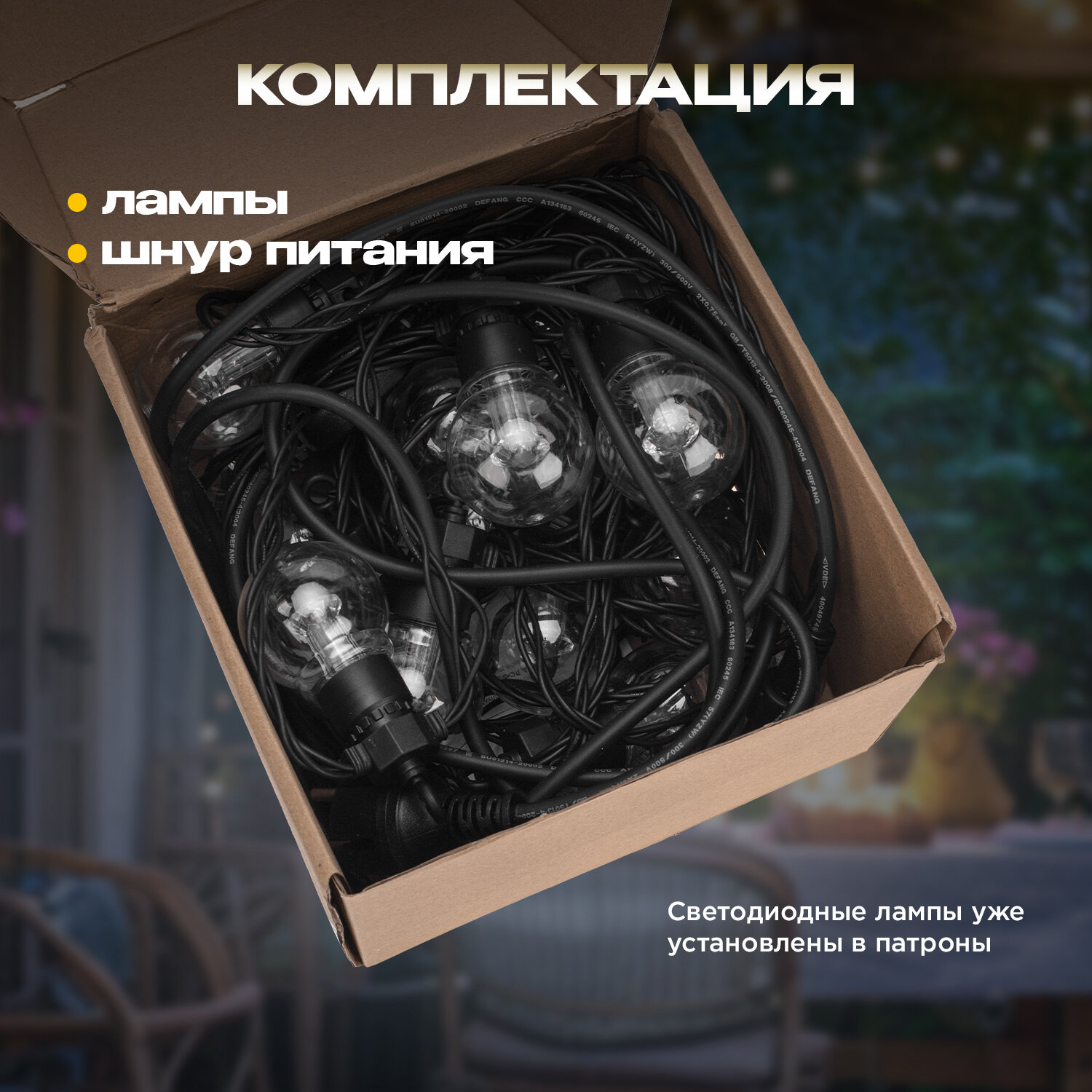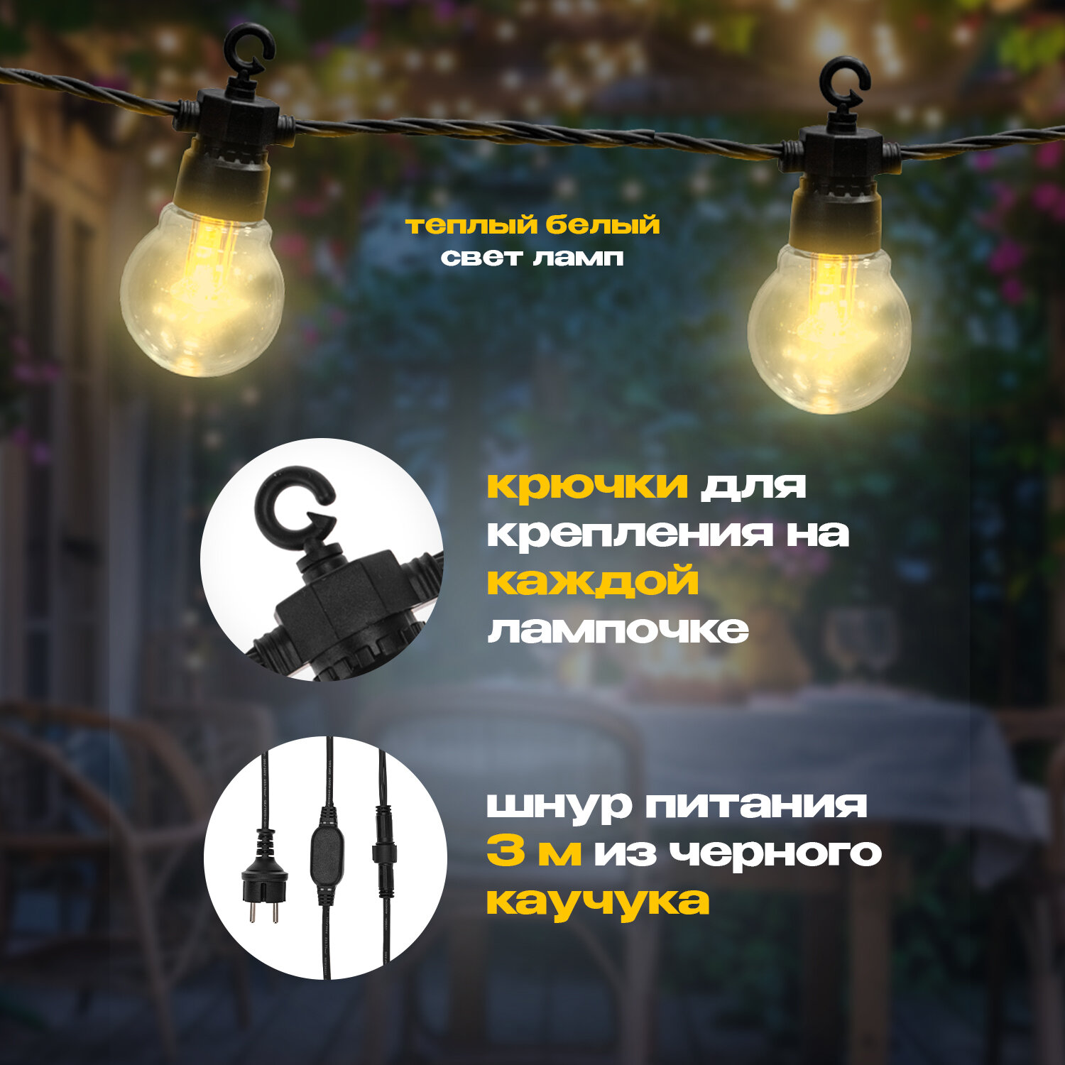 Ниже Вы можете прочитать отзывы на Уличная гирлянда Лофт Neon-Night 10м, 20 ламп, влагостойкость IP65, теплый белый, ознакомится с подробными характеристиками, посмотреть интересные обзоры и фотографии на Уличная гирлянда Лофт Neon-Night 10м, 20 ламп, влагостойкость IP65, теплый белый.