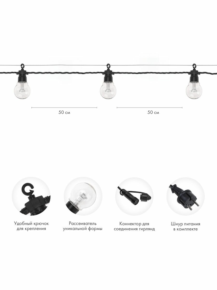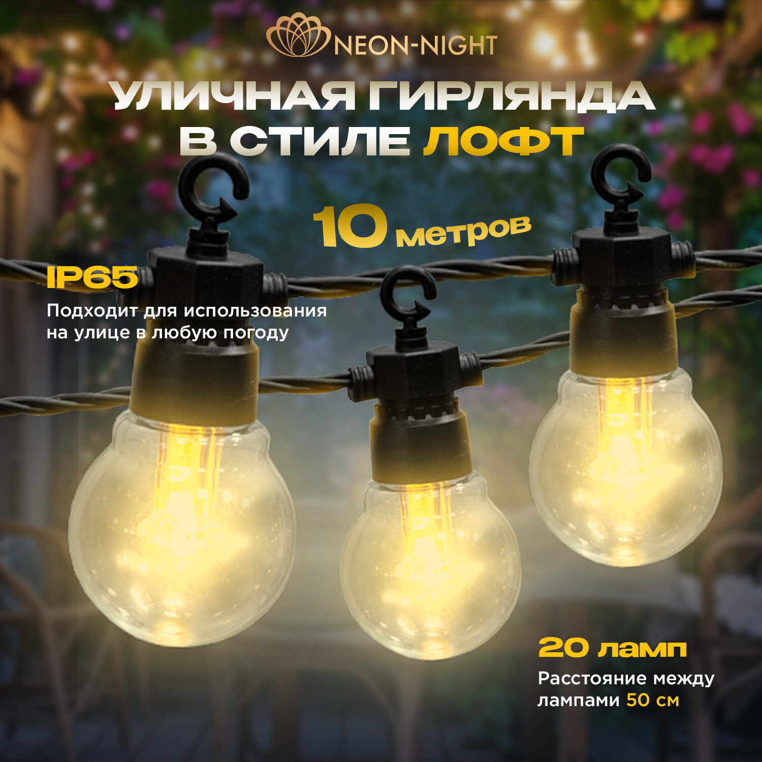 Уличная гирлянда Лофт Neon-Night 10м, 20 ламп, влагостойкость IP65, теплый белый интересное: