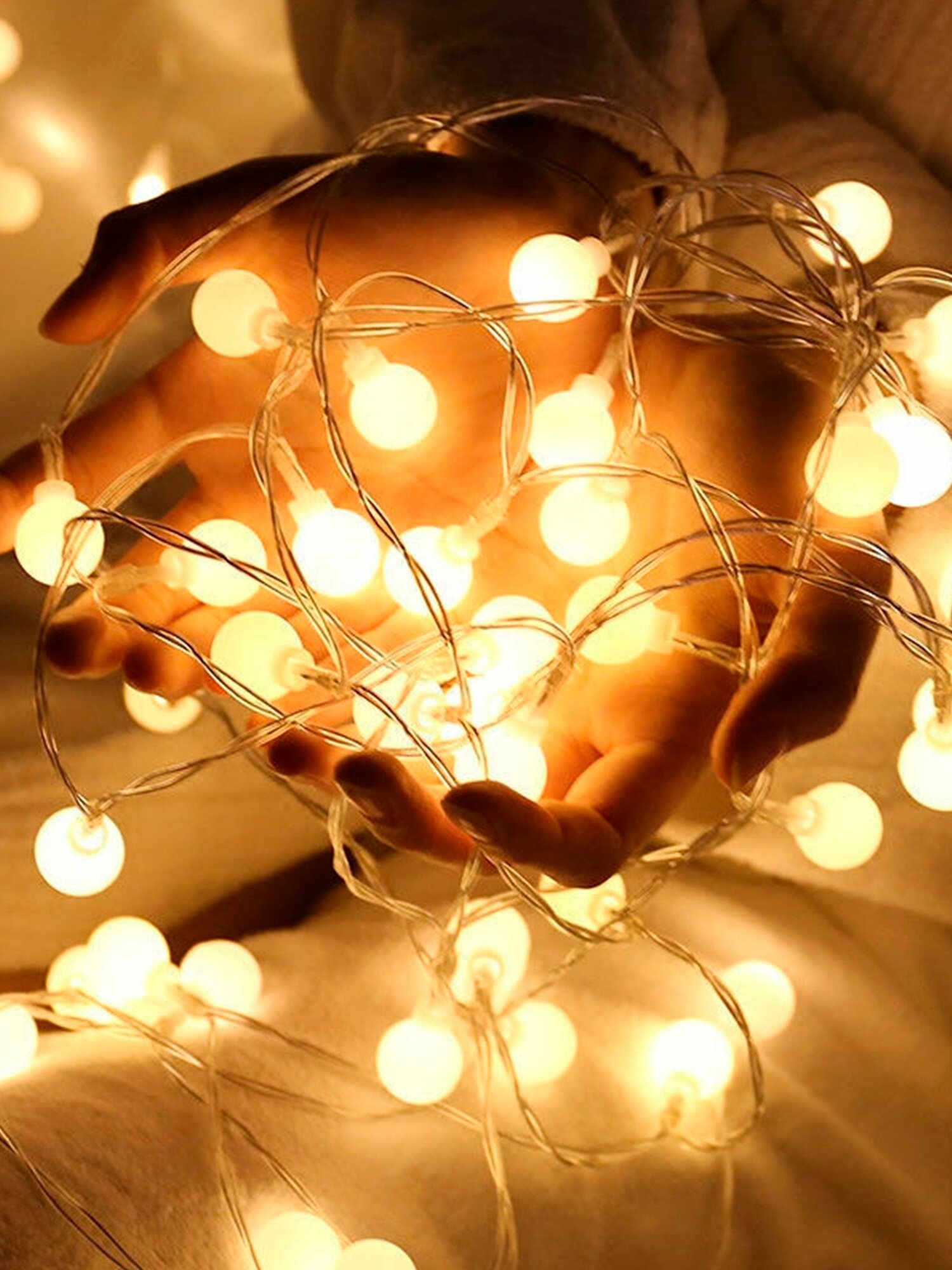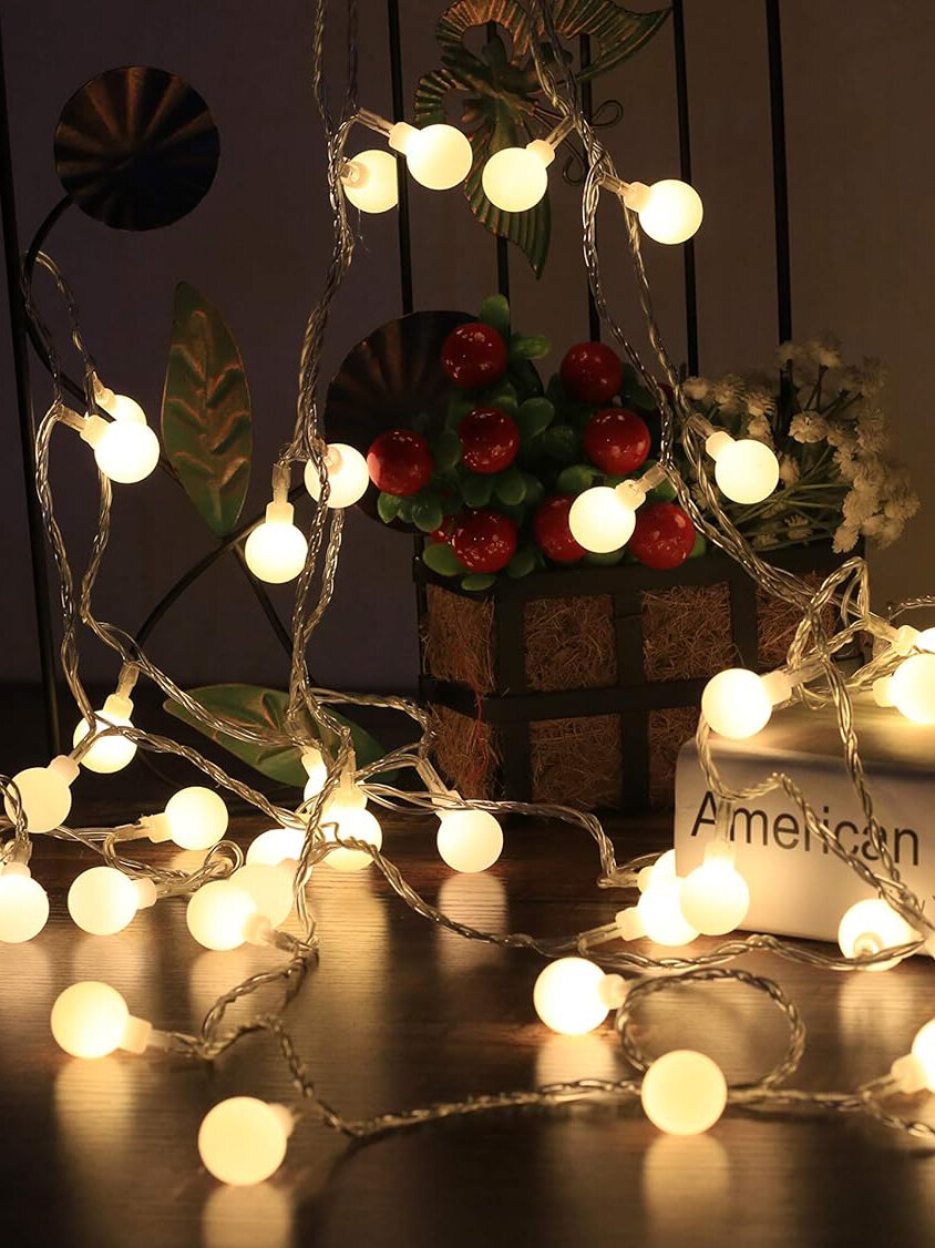 СохранитьГирлянда на батарейках Шарики 10 метров АА + USB светодиодная для дома теплый свет интересное:
