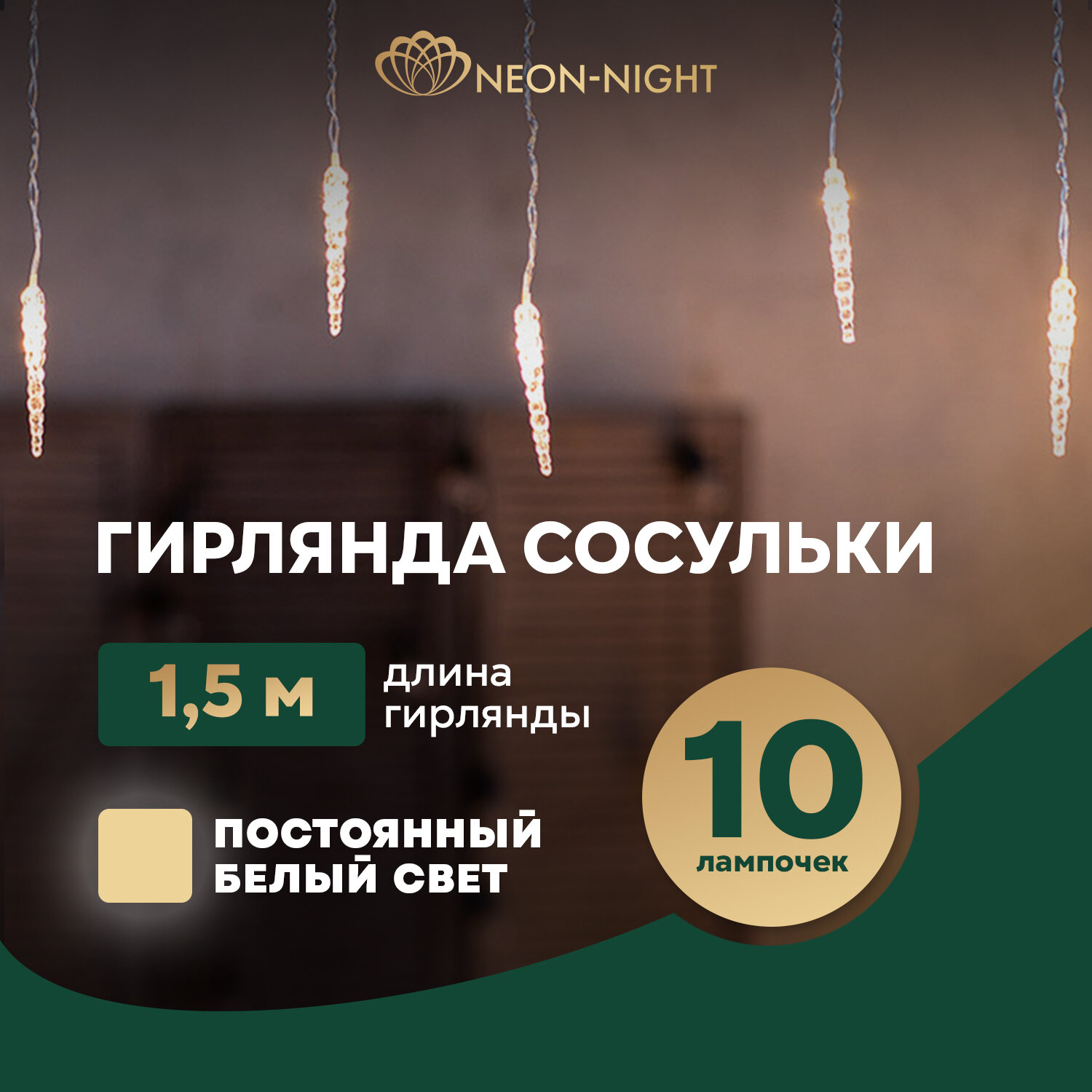 Купить Светодиодная гирлянда "Сосульки" Neon-Night 1.5х0.25 м, теплое белое свечение