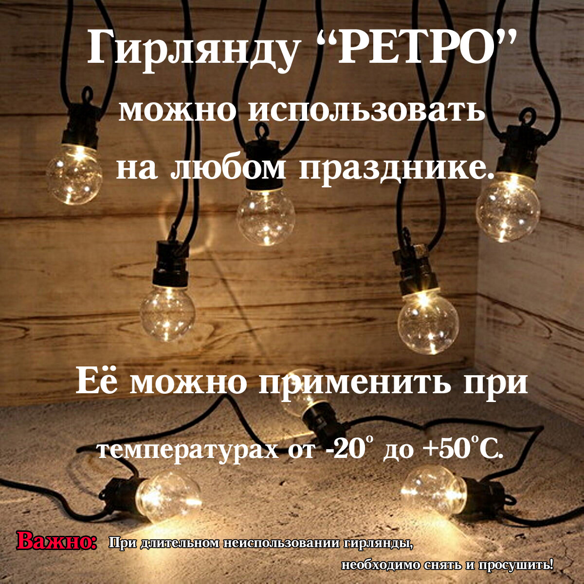 Уличная гирлянда "Ретро" 20 ламп на 10 метров интересное: