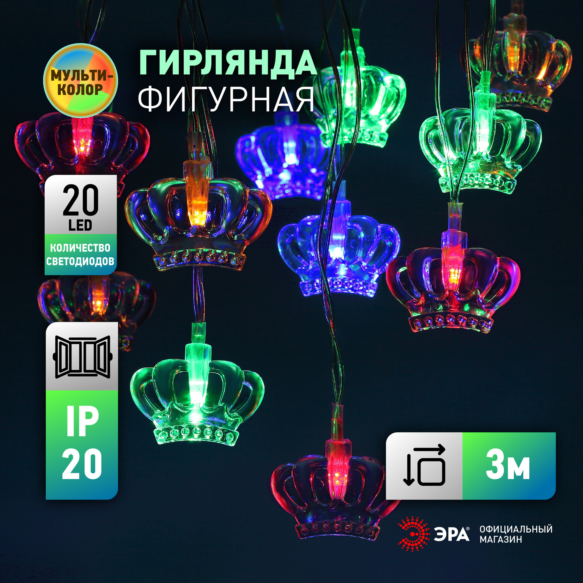 Гирлянда светодиодная нить ENIN-3K Короны ЭРА ретро от сети 3 м, 20 LED интересное: