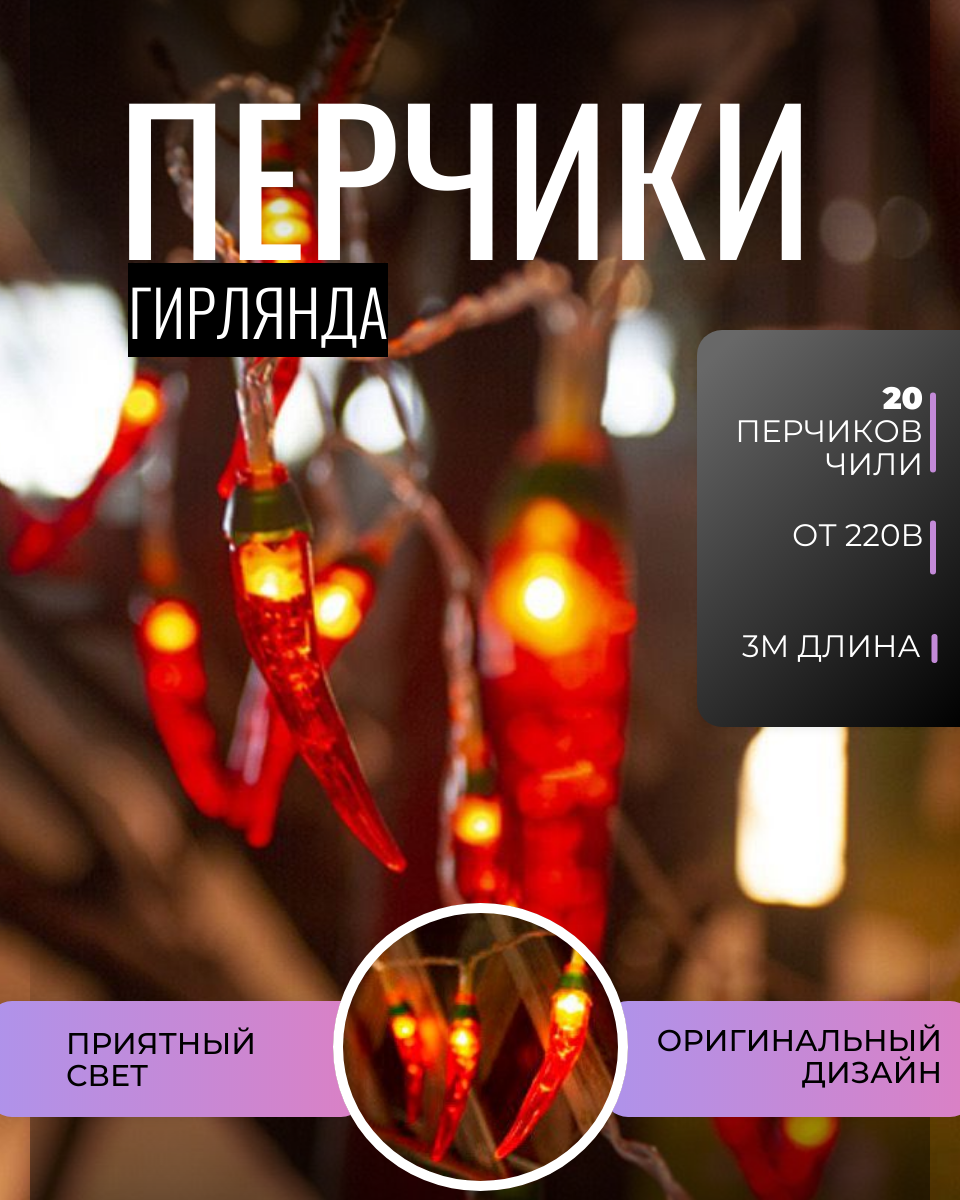 Елочная электрическая гирлянда Перец Чили, 20 ламп, 3 м интересное: