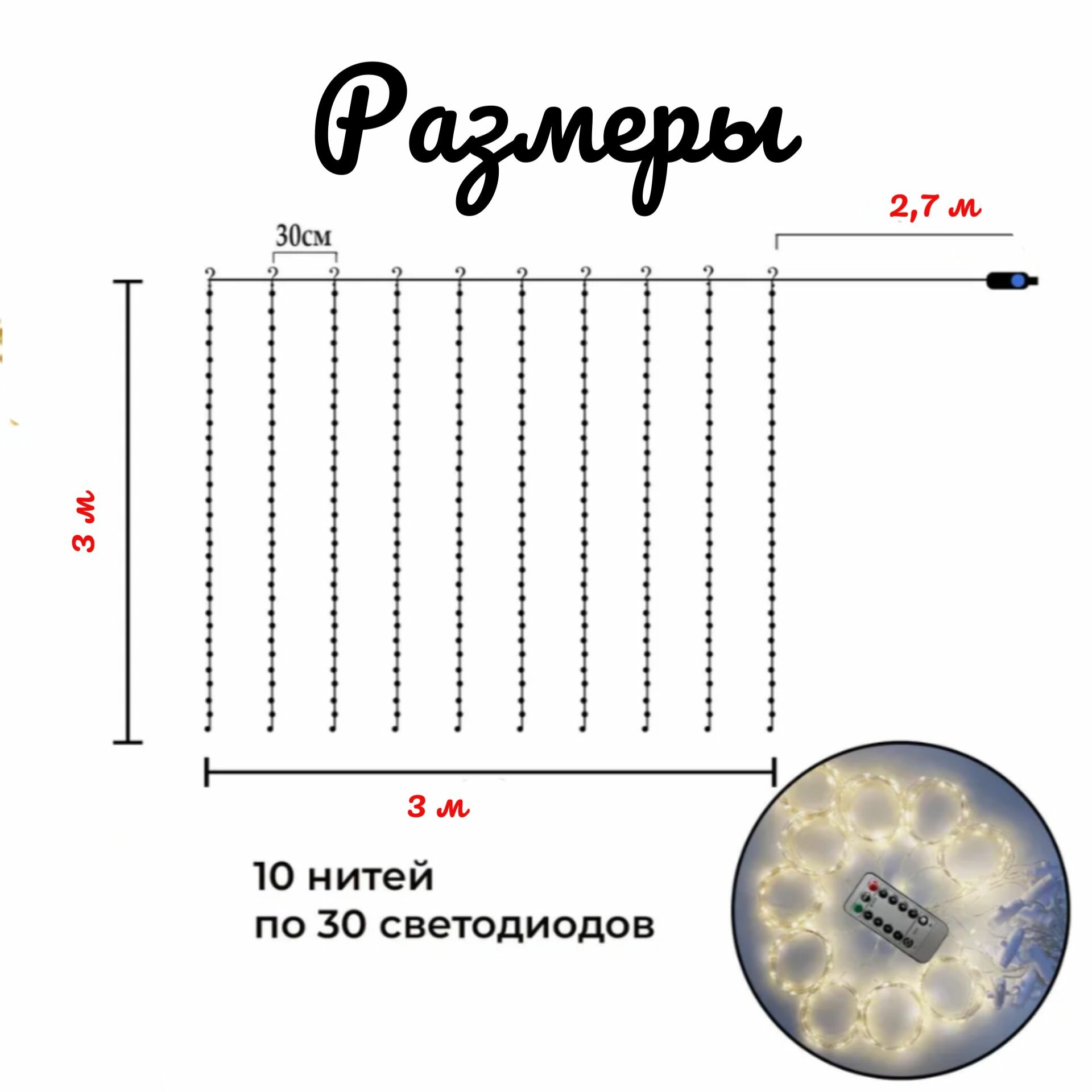 Гирлянда штора занавес 3 на 3 метра холодный белый цвет интерьерная интересное: